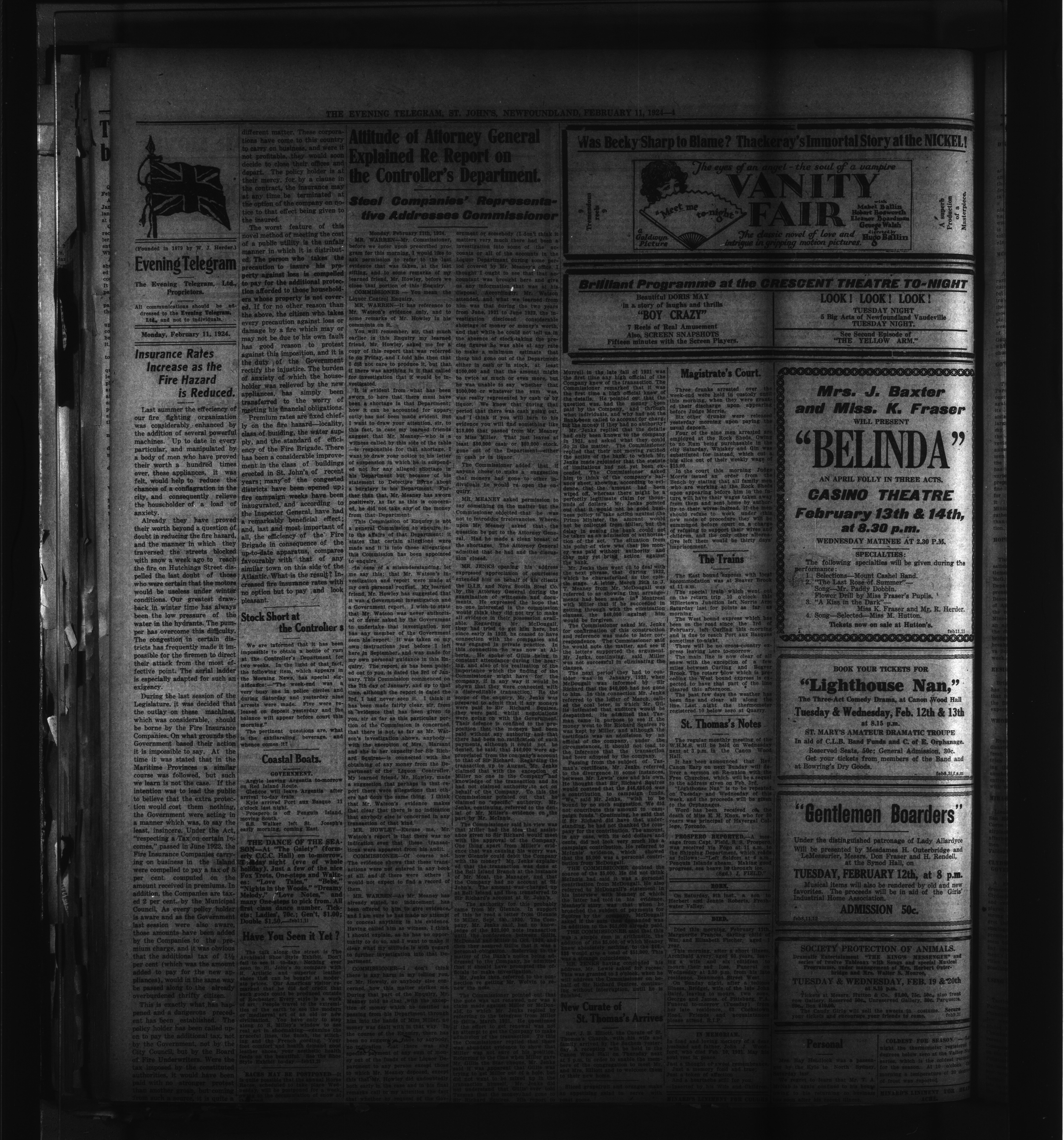 The Evening Telegram : Volume XLVI, Number 34 (February 11, 1924)