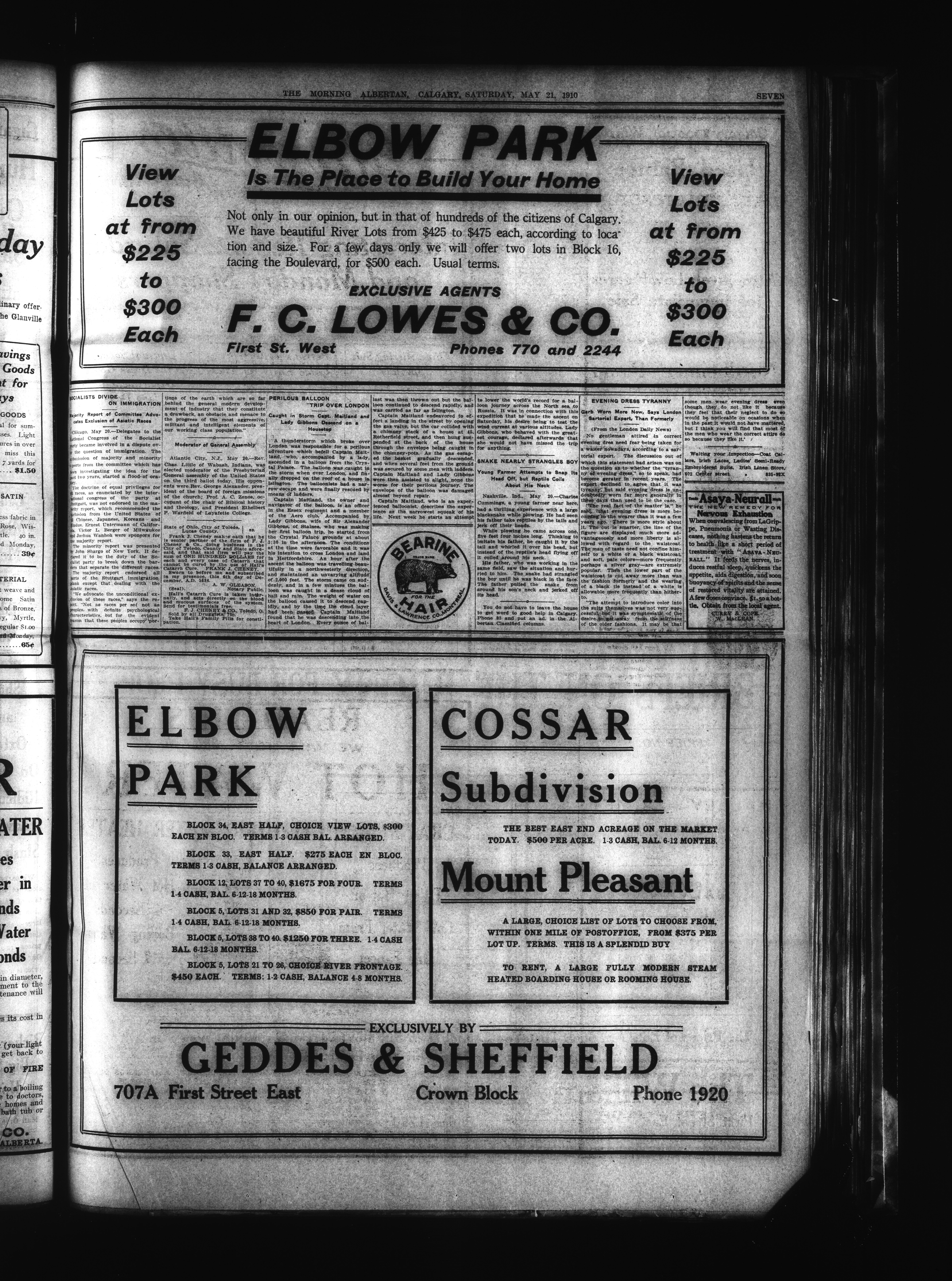 The Morning Albertan : Ninth Year, No. 71 (May 21, 1910)