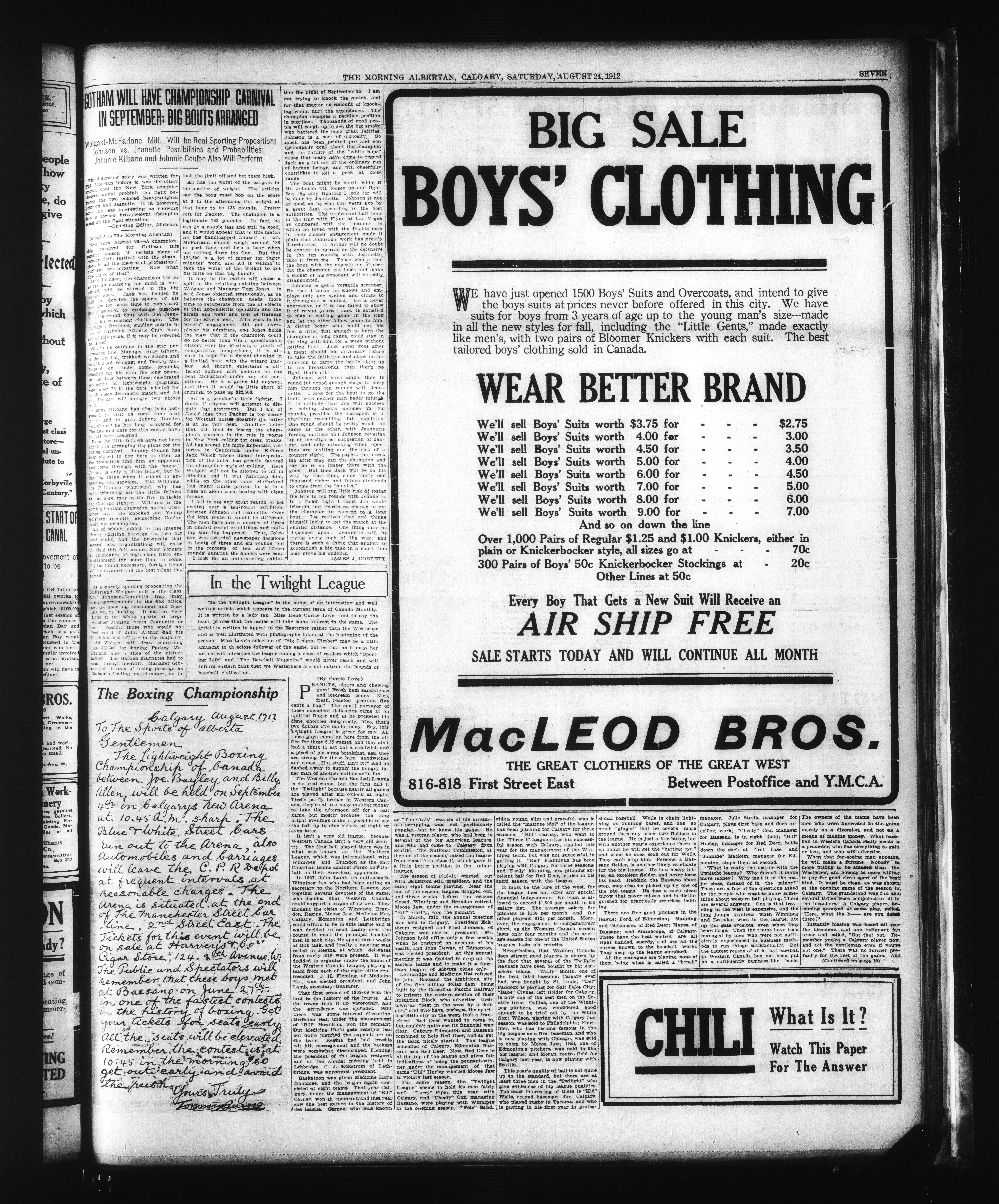 The Morning Albertan : Eleventh Year, No. 152 (August 24, 1912)
