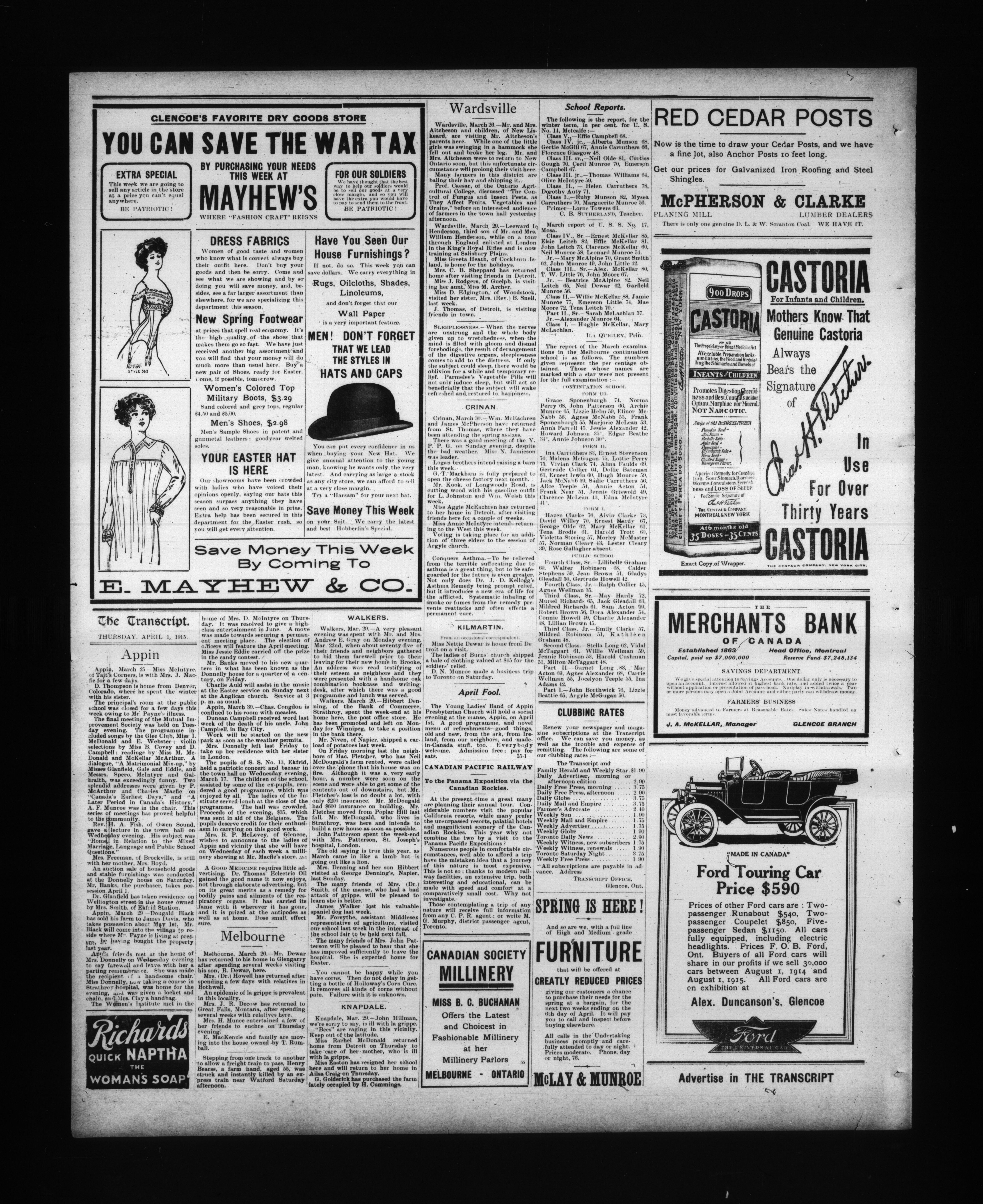 - The Glencoe transcript : Volume 44, No. 13 (April 1, 1915)