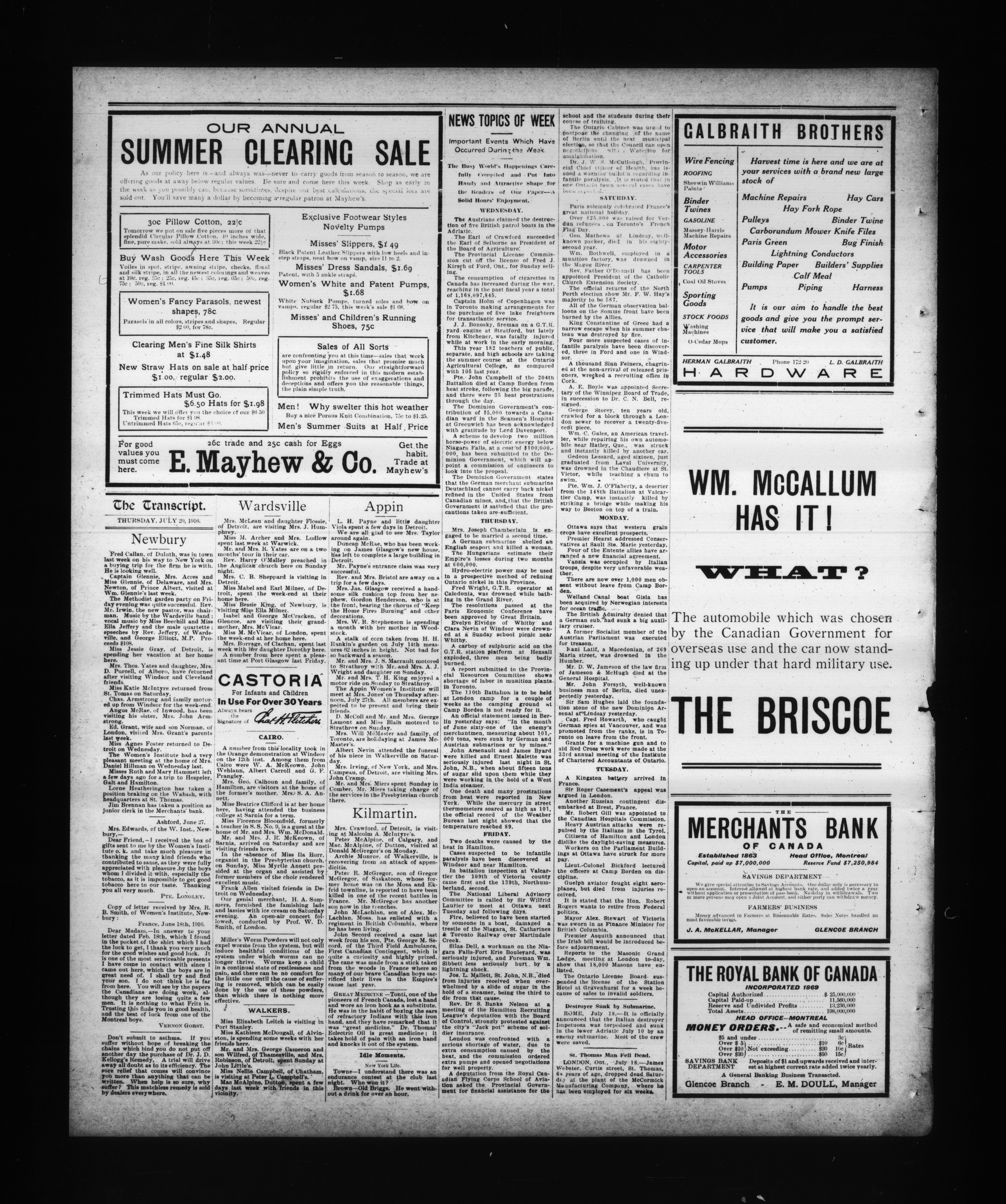 The Glencoe transcript. : The Glencoe transcript : Volume 45, No. 29 (July 20, 1916)
