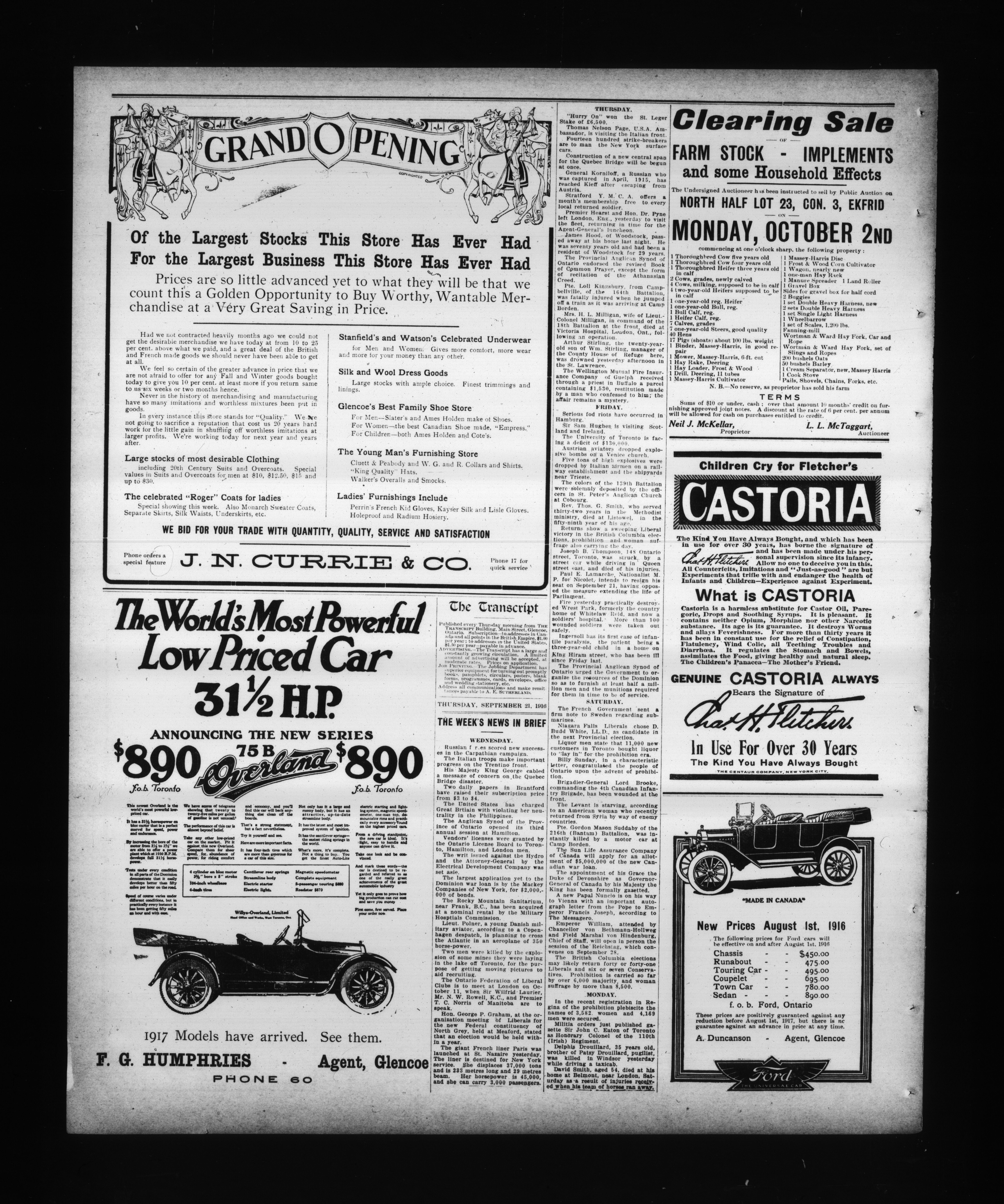 - The Glencoe transcript : Volume 45, No. 37 (September 21, 1916)