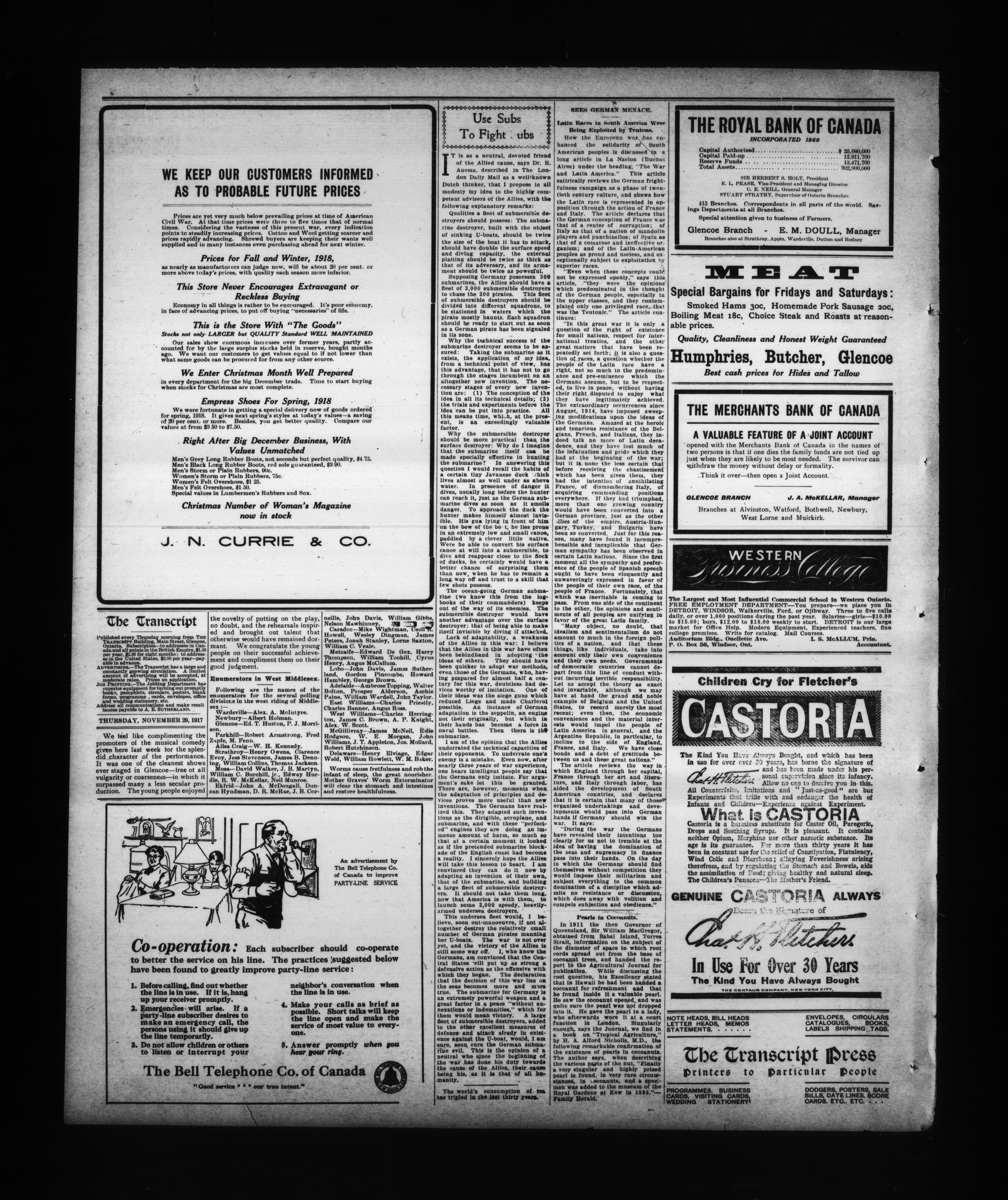 - The Glencoe transcript : Volume 46, No. 48 (November 29, 1917)