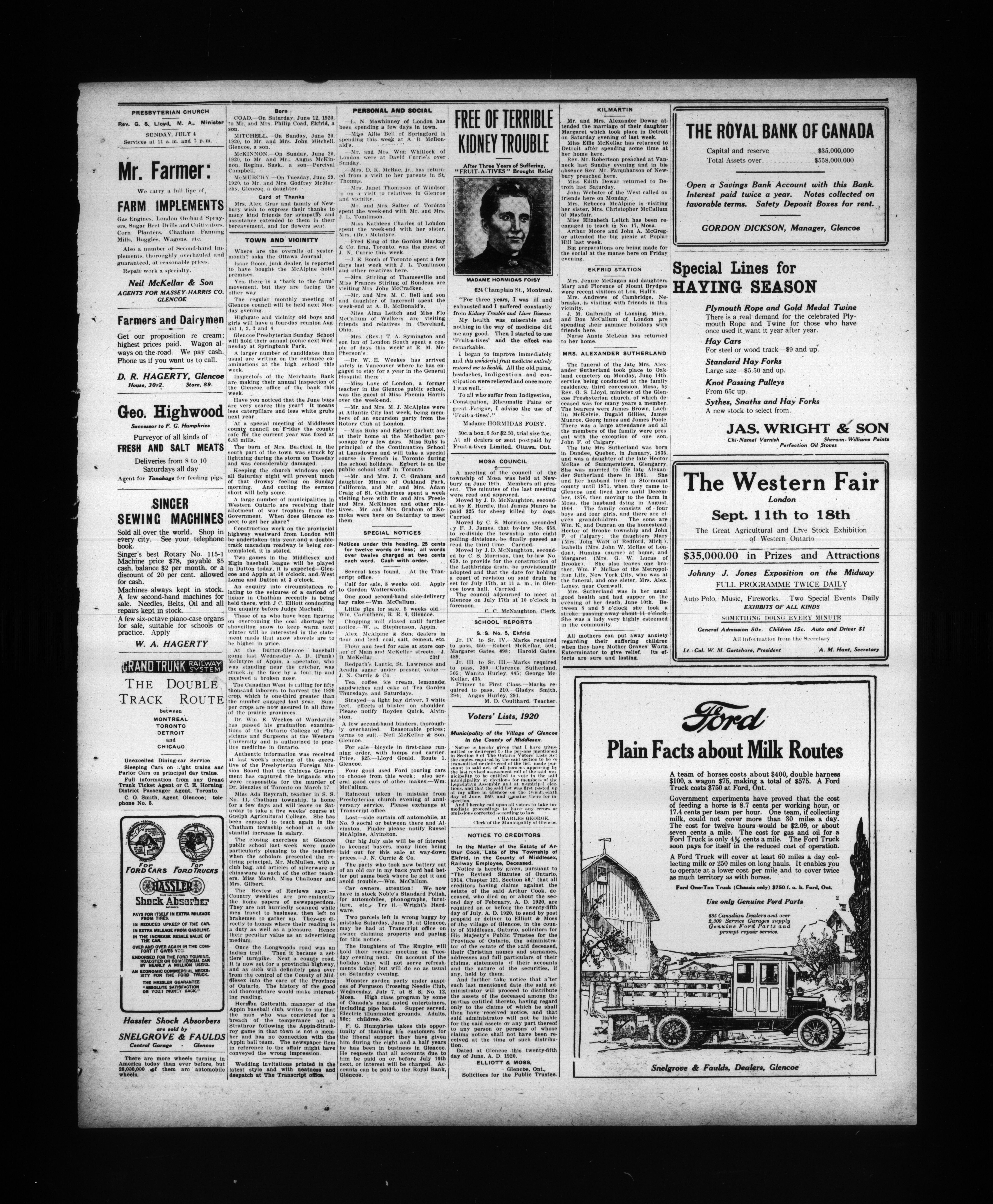 Glencoe, Ontario, Canada : A.E. Sutherland, Publisher, [1920]; 8 images avec recherche en texte intégral
