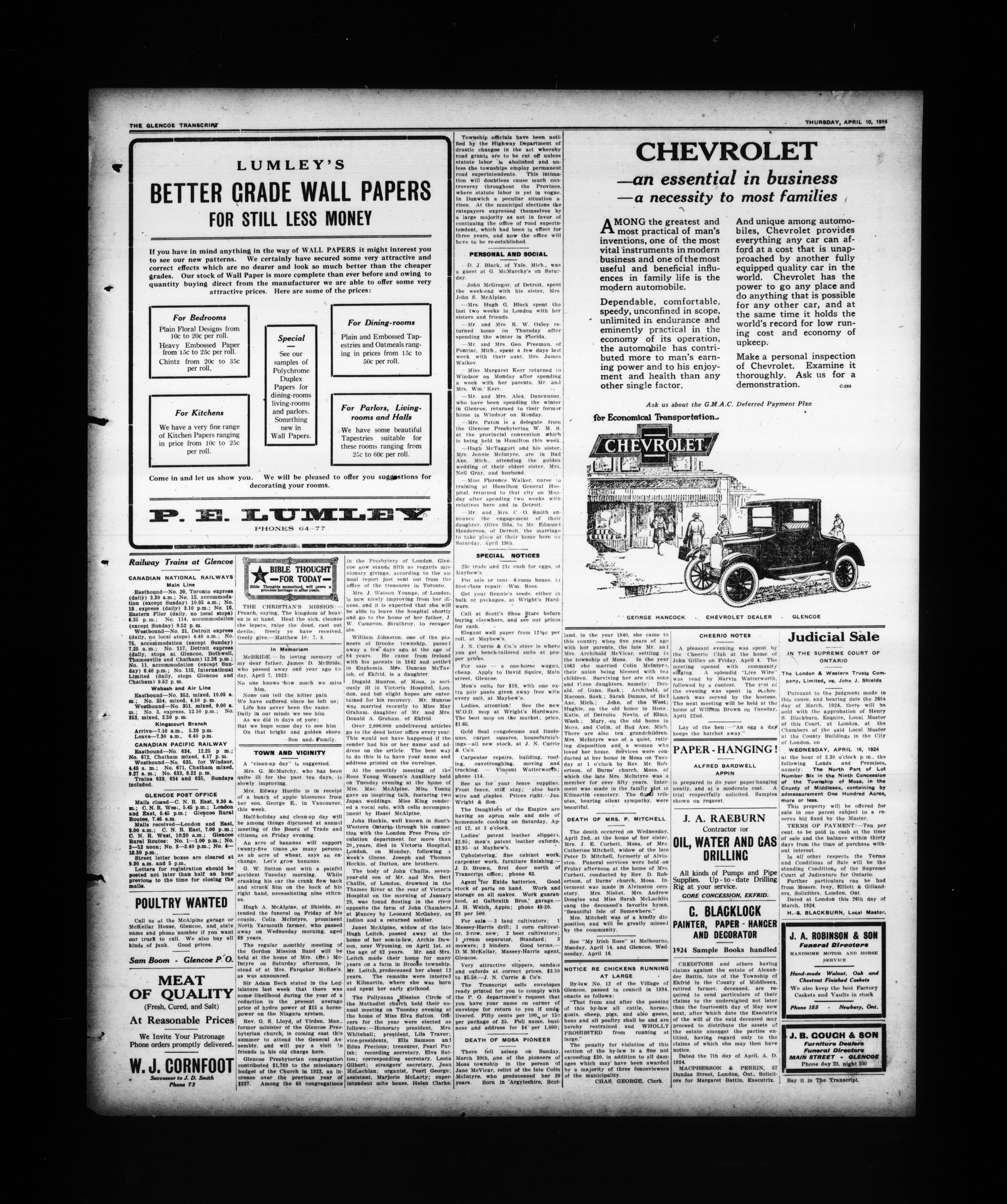 - The Glencoe transcript : Volume 53, No. 15 (April 10, 1924)