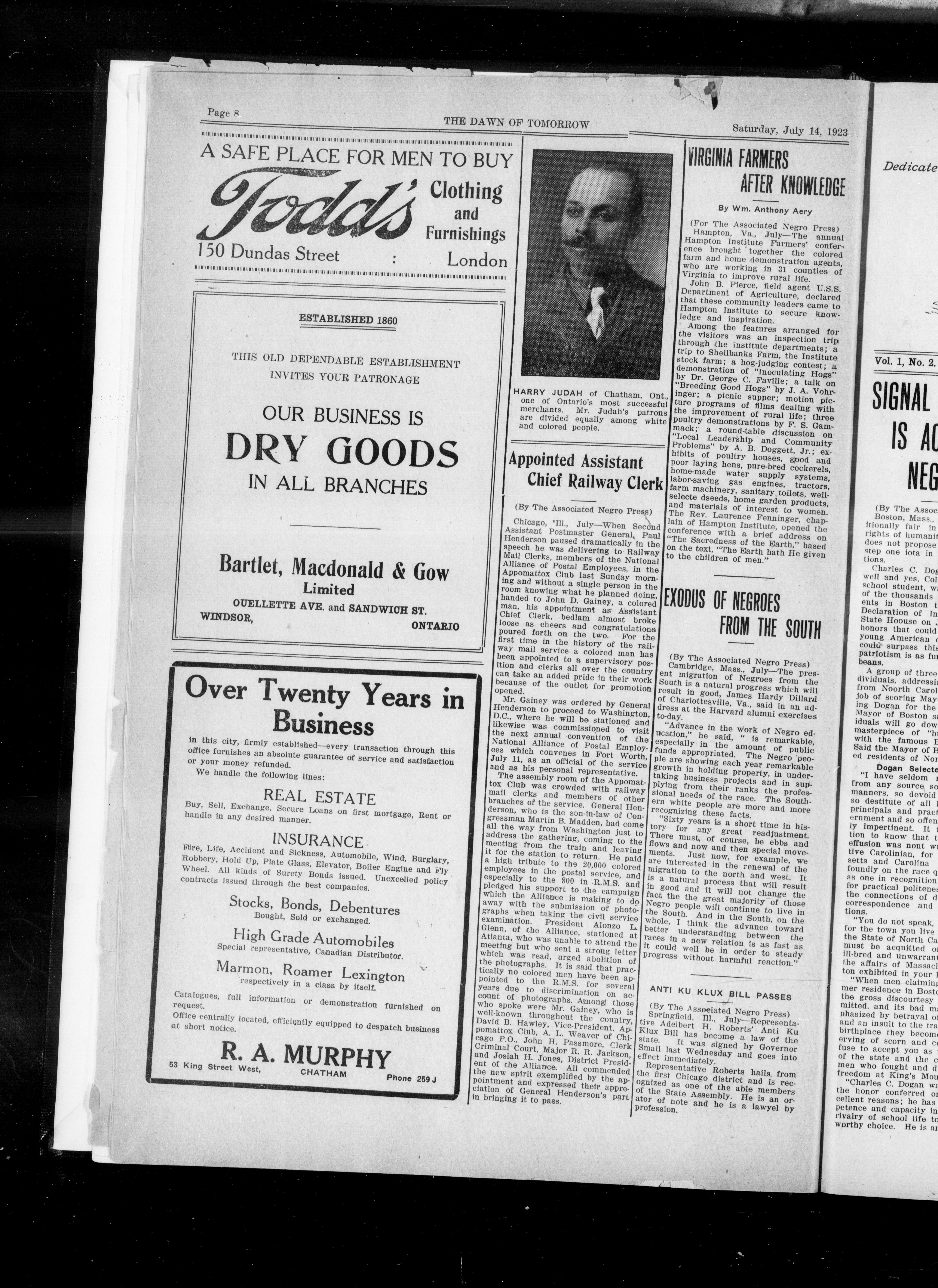 - The Dawn of tomorrow : Vol. I, No. 1 (July 14, 1923)