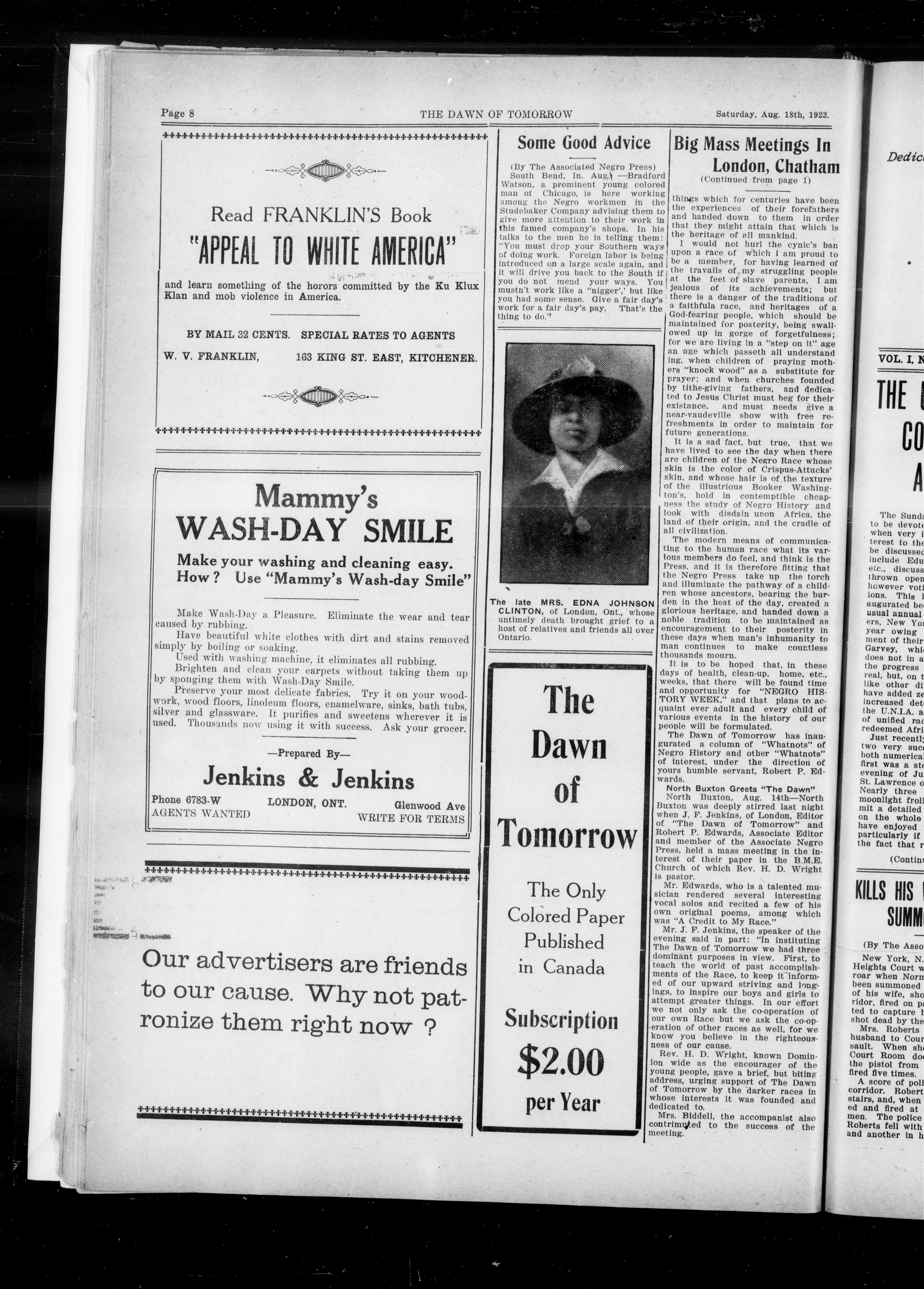 Aide London, Ontario: The Dawn of Tomorrow Publishing Co., [1923]; 8 images avec recherche en texte intégral