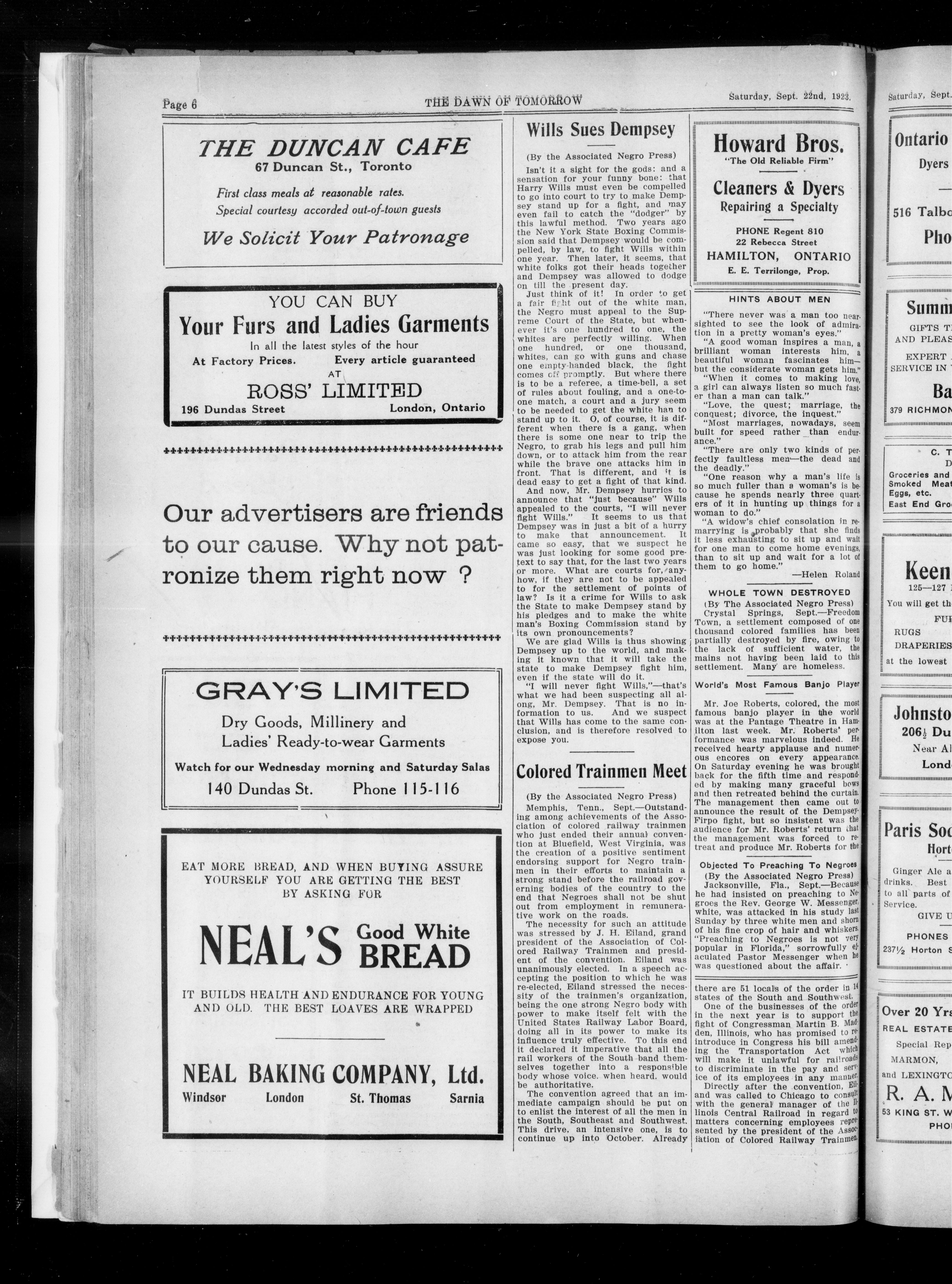 - The Dawn of tomorrow : Vol. I, No. 11 (September 22, 1923)
