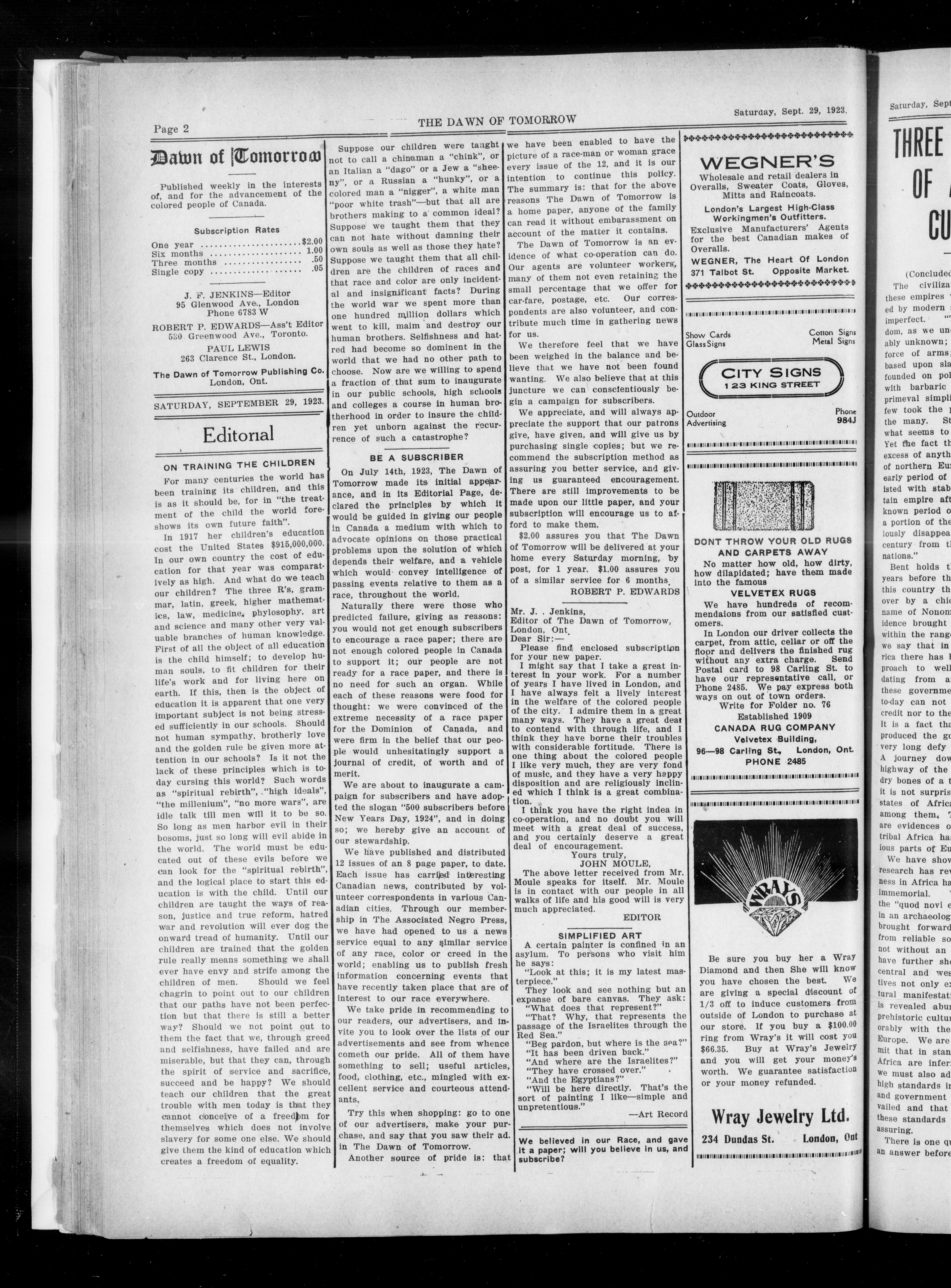 The Dawn of tomorrow. : The Dawn of tomorrow : Vol. I, No. 12 (September 29, 1923)
