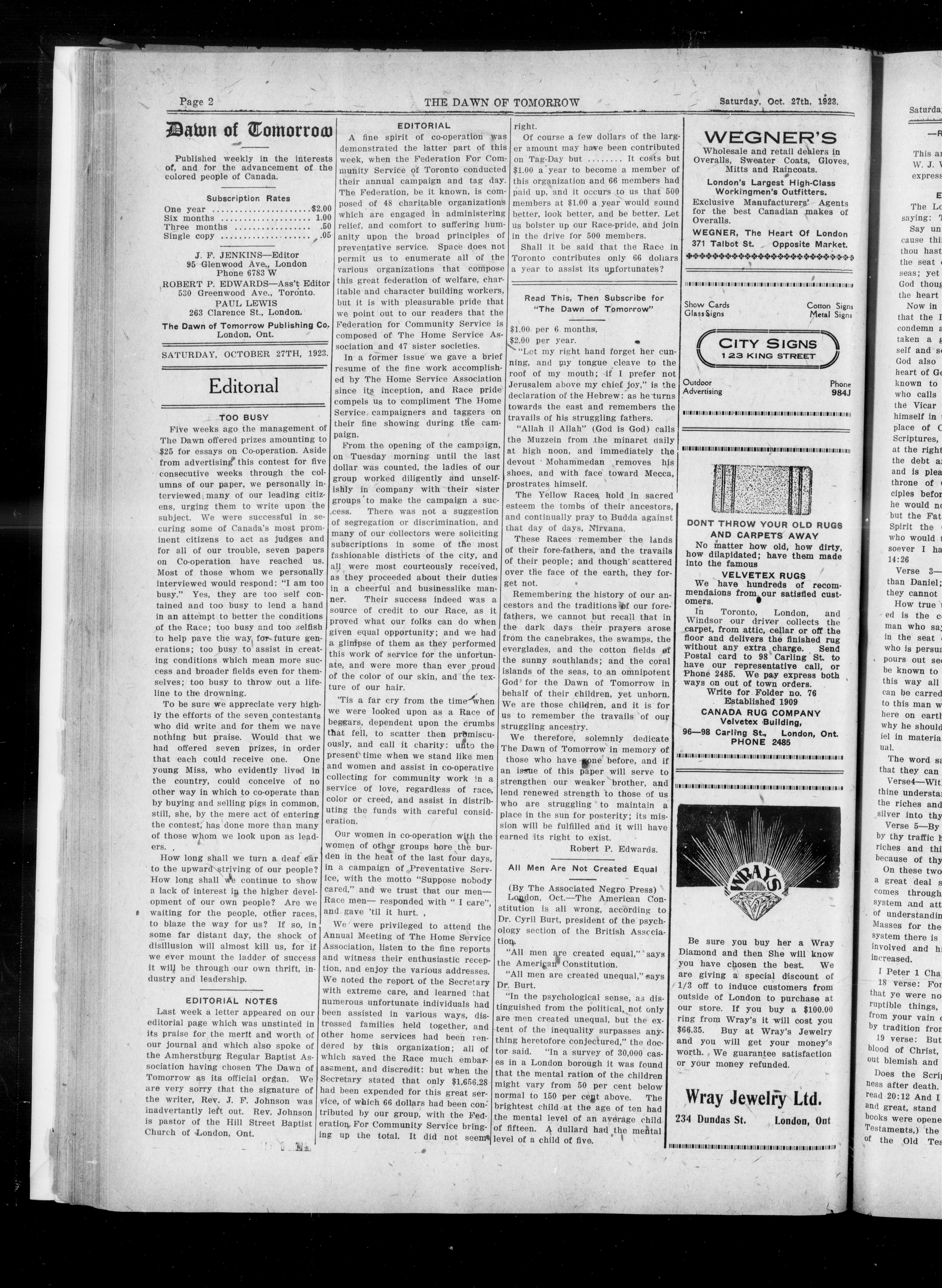- The Dawn of tomorrow : Vol. I, No. 16 (October 27, 1923)