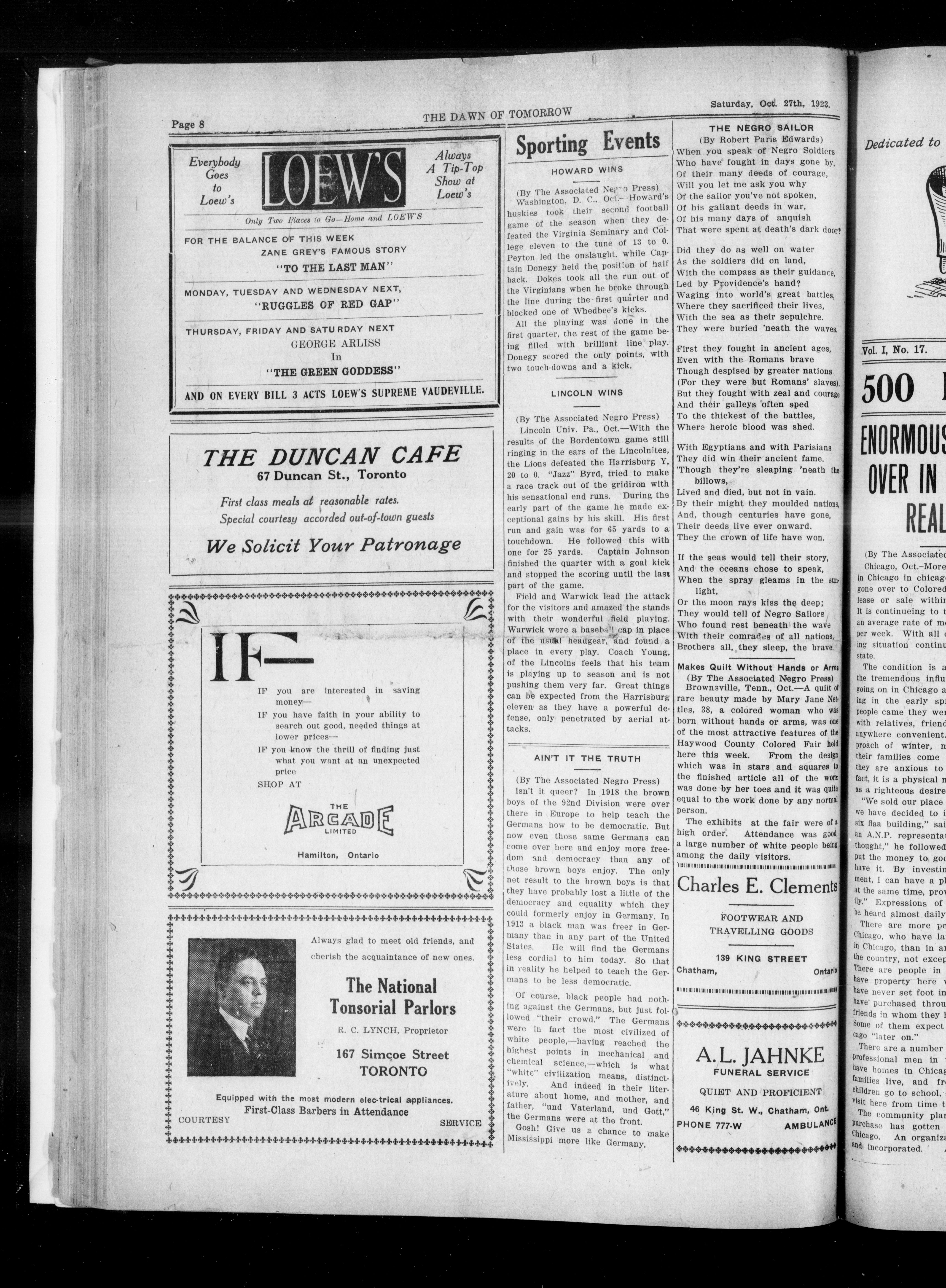 - The Dawn of tomorrow : Vol. I, No. 16 (October 27, 1923)