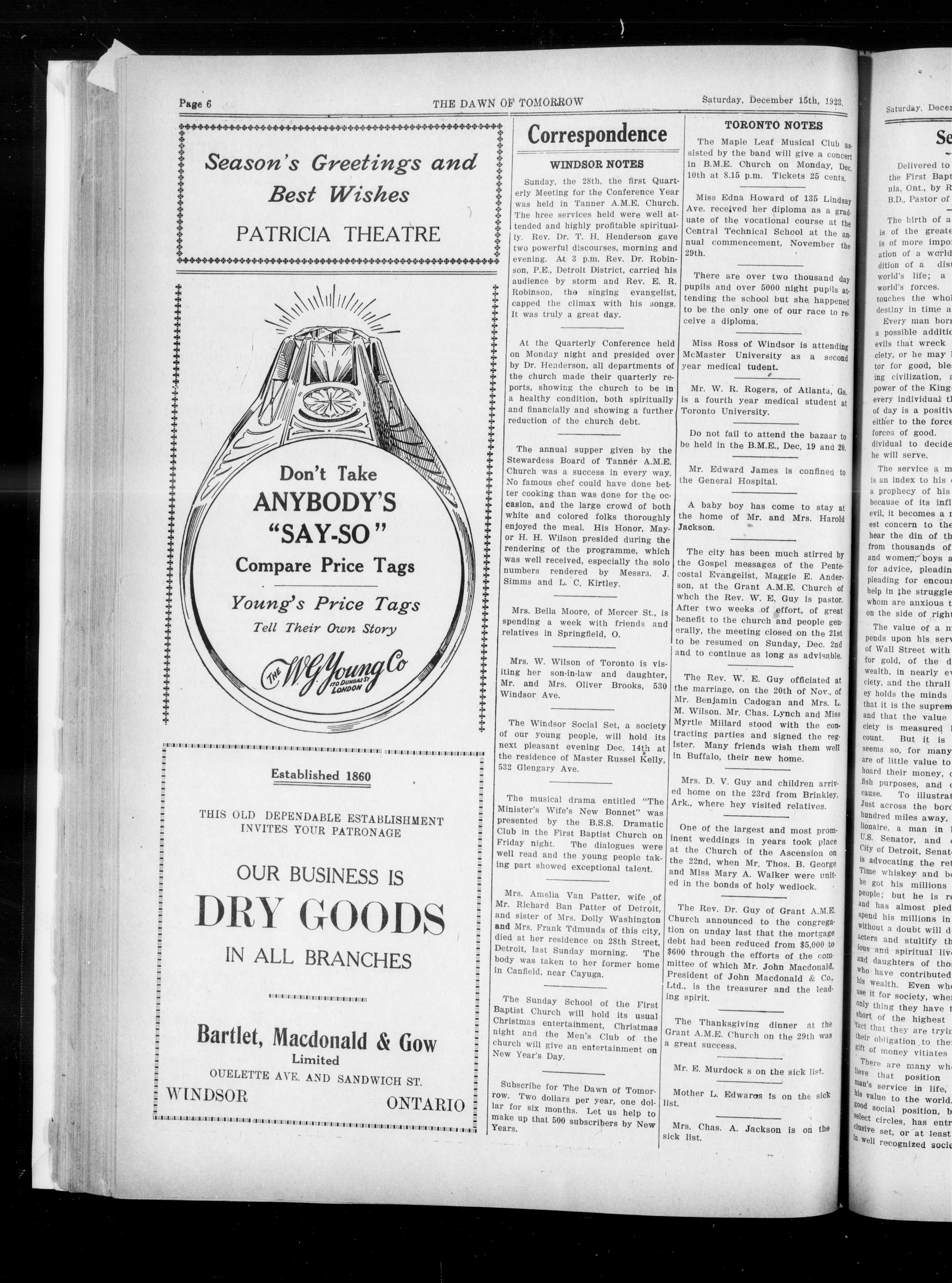 The Dawn of tomorrow : Vol. I, No. 22 (December 15, 1923)