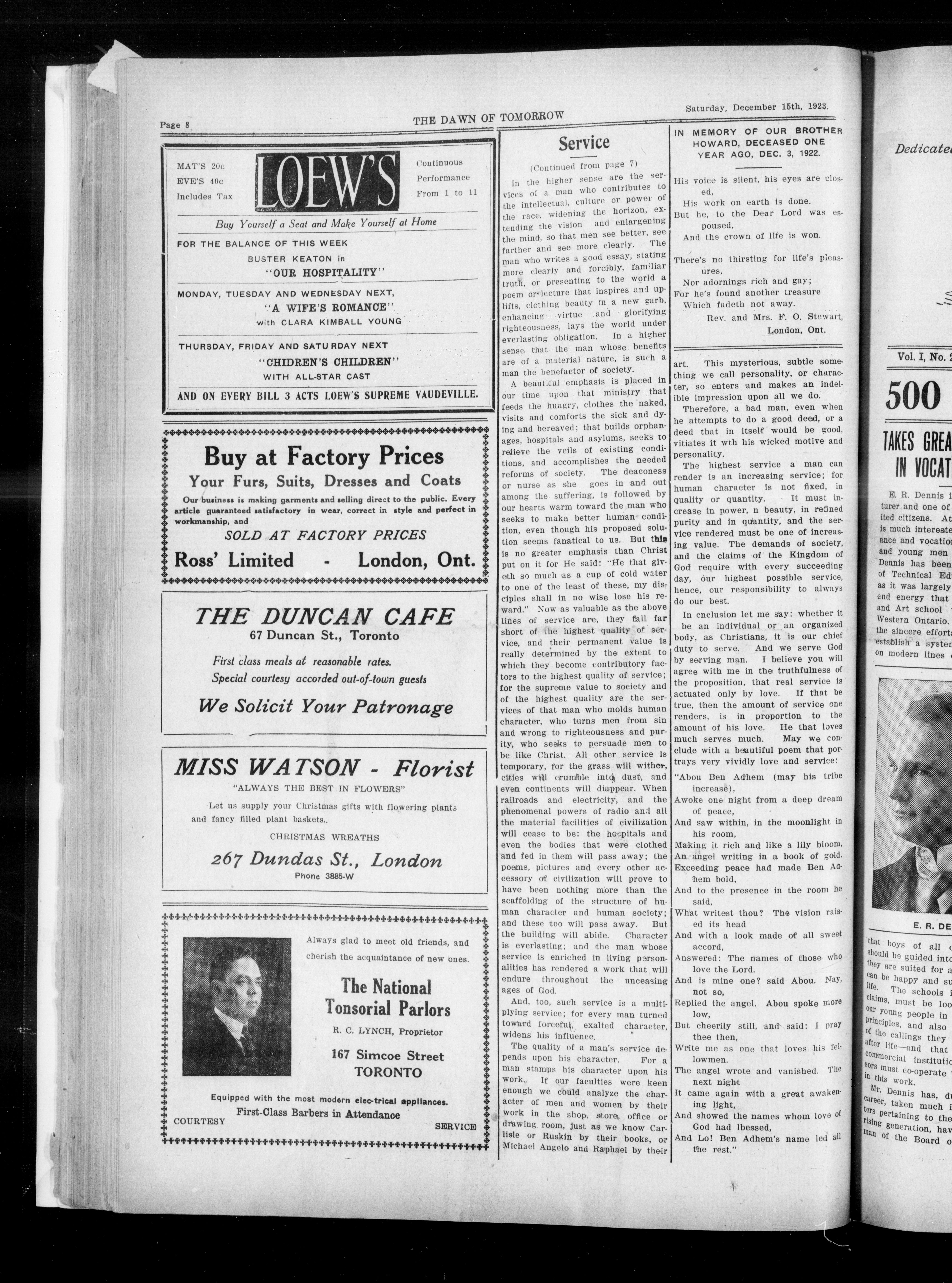 London, Ontario: The Dawn of Tomorrow Publishing Co., [1923]; 8 images avec recherche en texte intégral