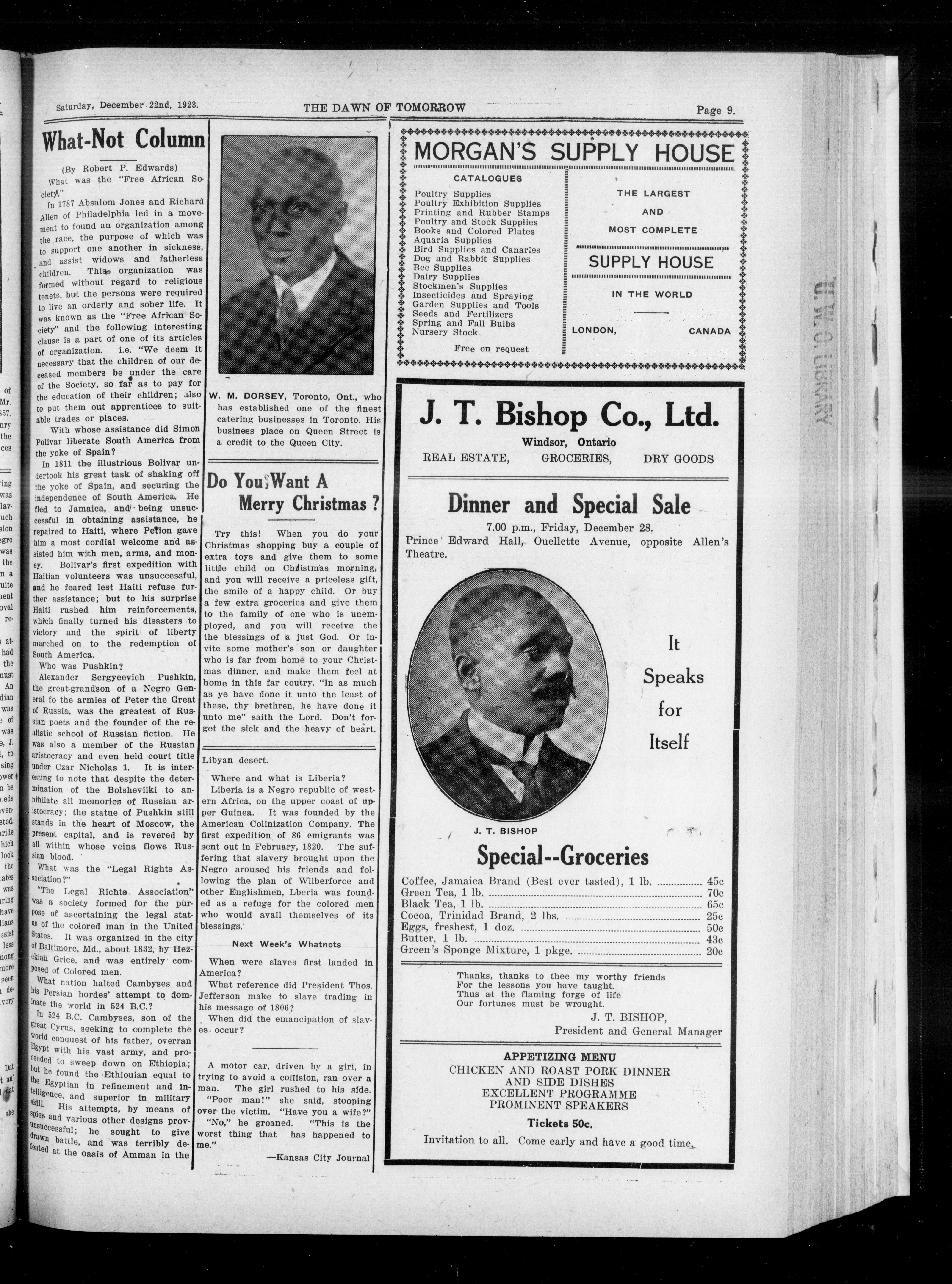 - The Dawn of tomorrow : Vol. I, No. 23 (December 22, 1923)
