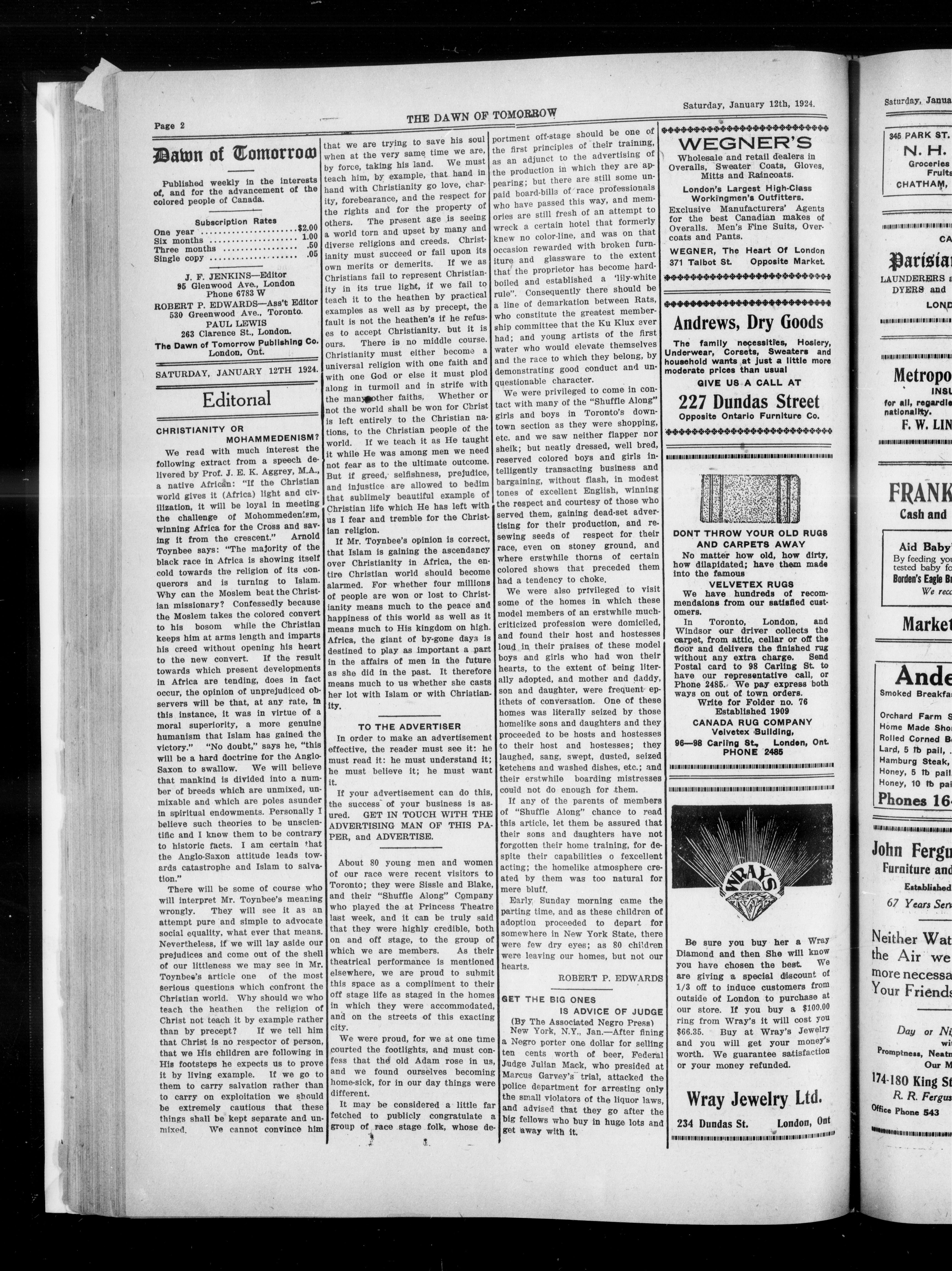 London, Ontario: The Dawn of Tomorrow Publishing Co., [1924]; 6 images avec recherche en texte intégral
