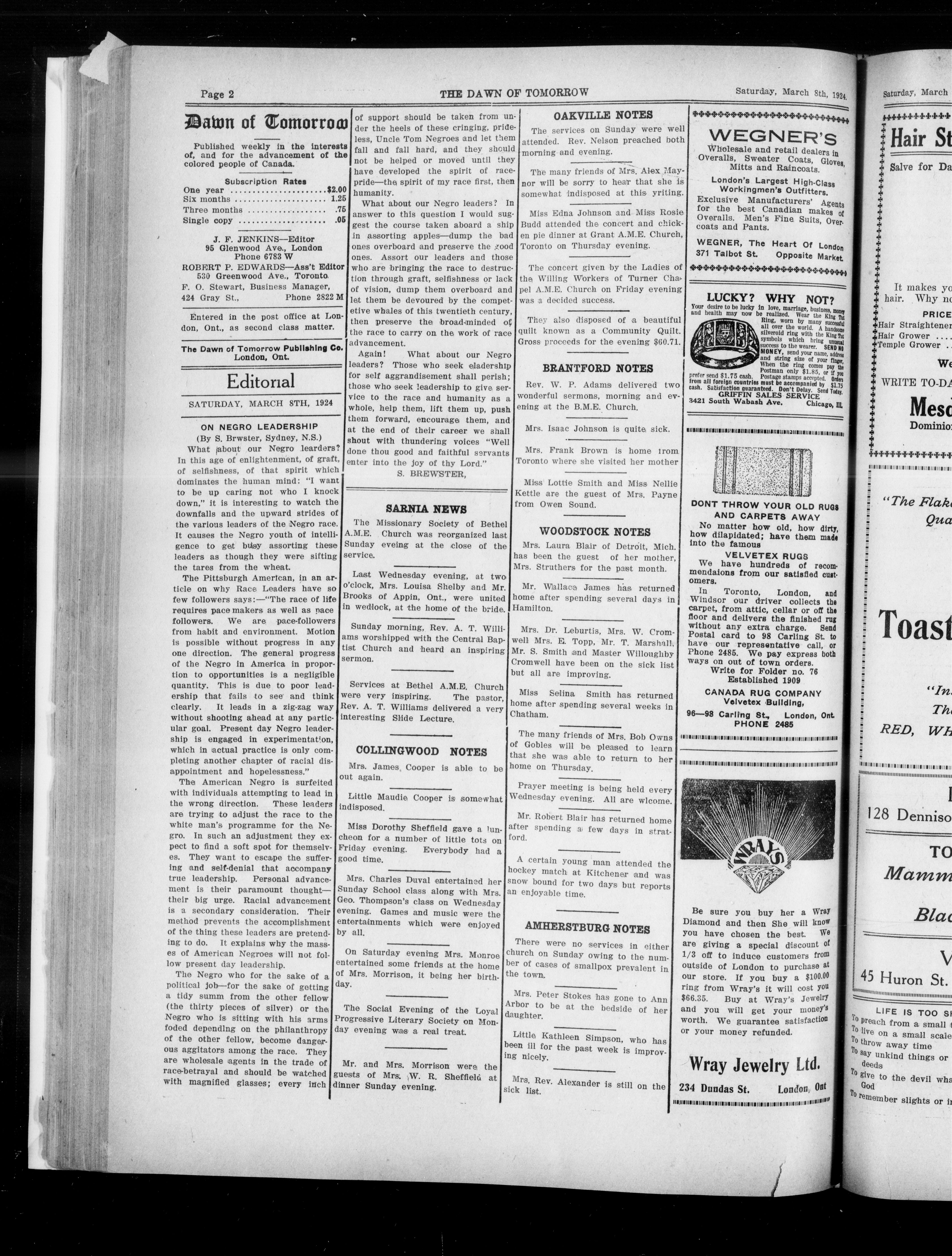 - The Dawn of tomorrow : Vol. I, No. 35 (March 8, 1924)