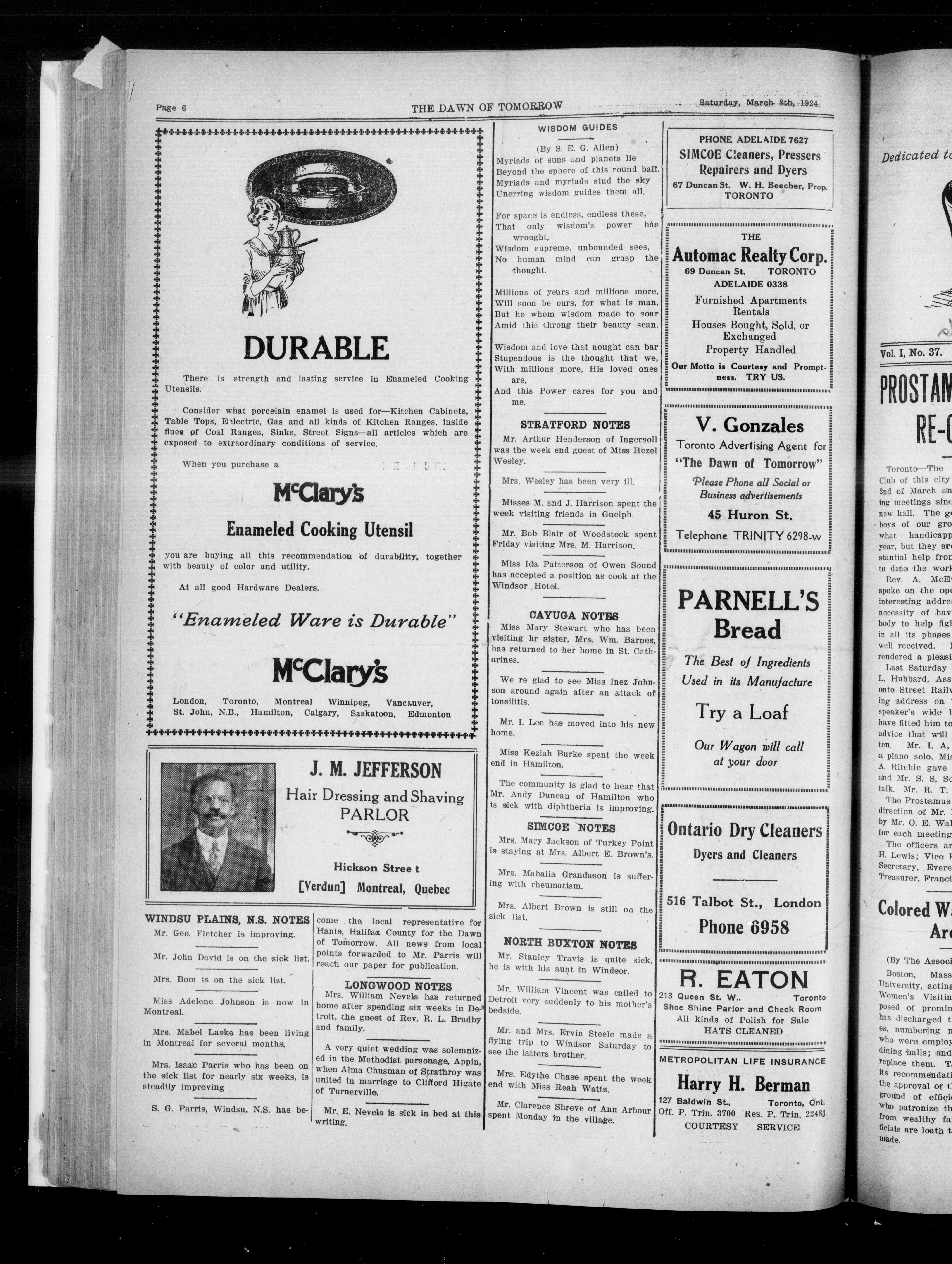 London, Ontario: The Dawn of Tomorrow Publishing Co., [1924]; 6 images avec recherche en texte intégral