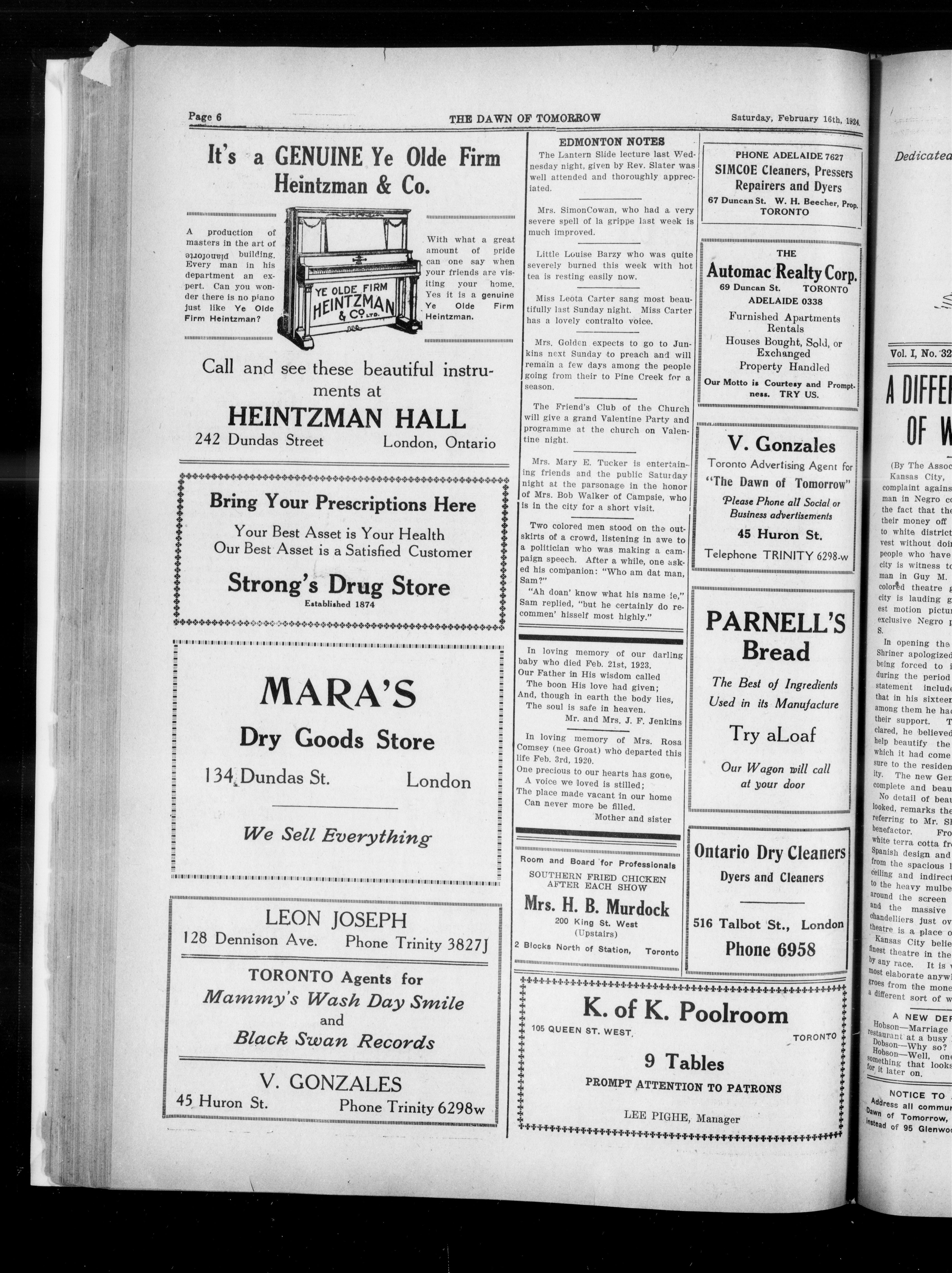London, Ontario: The Dawn of Tomorrow Publishing Co., [1924]; 6 images avec recherche en texte intégral