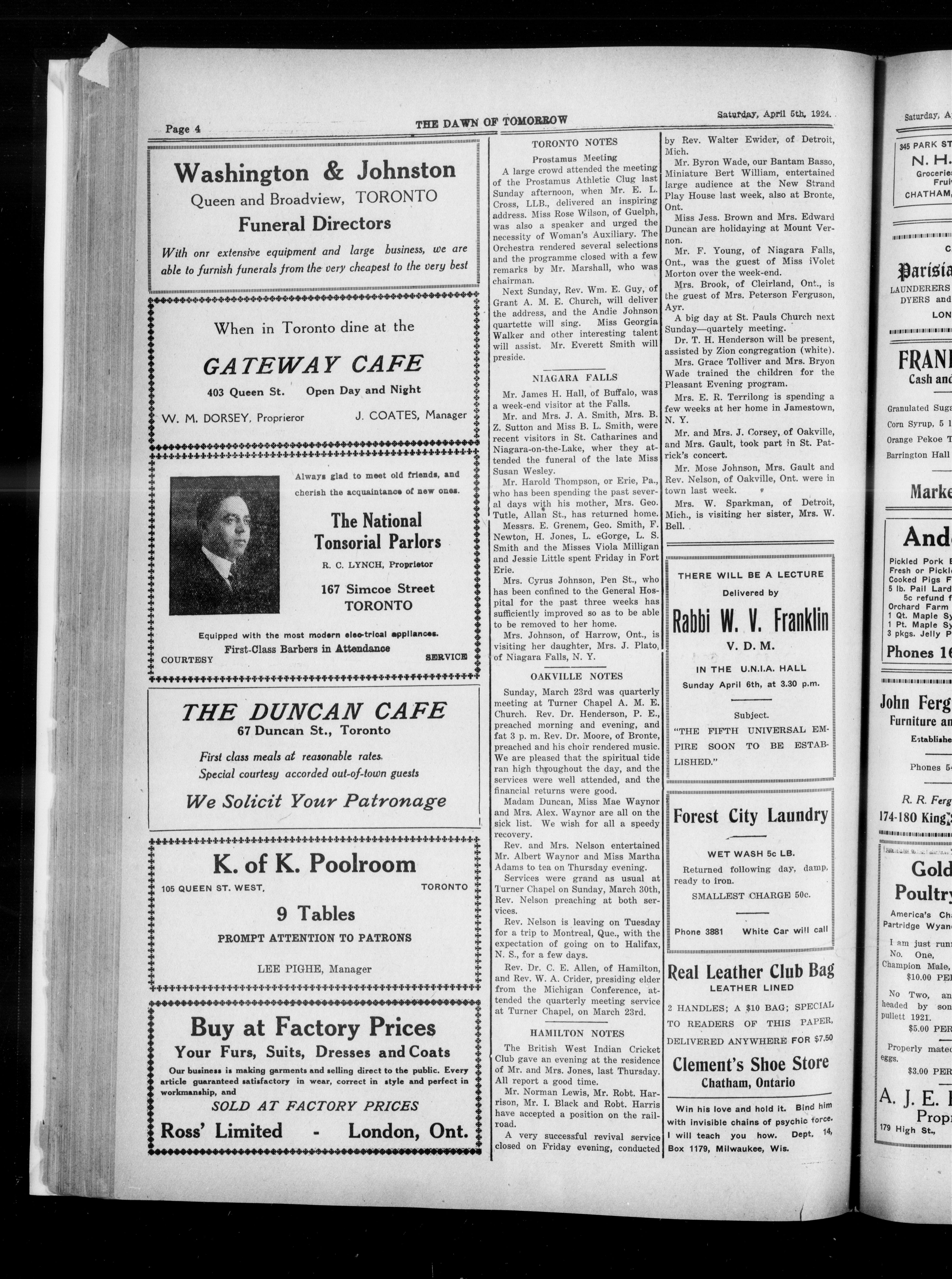London, Ontario: The Dawn of Tomorrow Publishing Co., [1924]; 6 images avec recherche en texte intégral