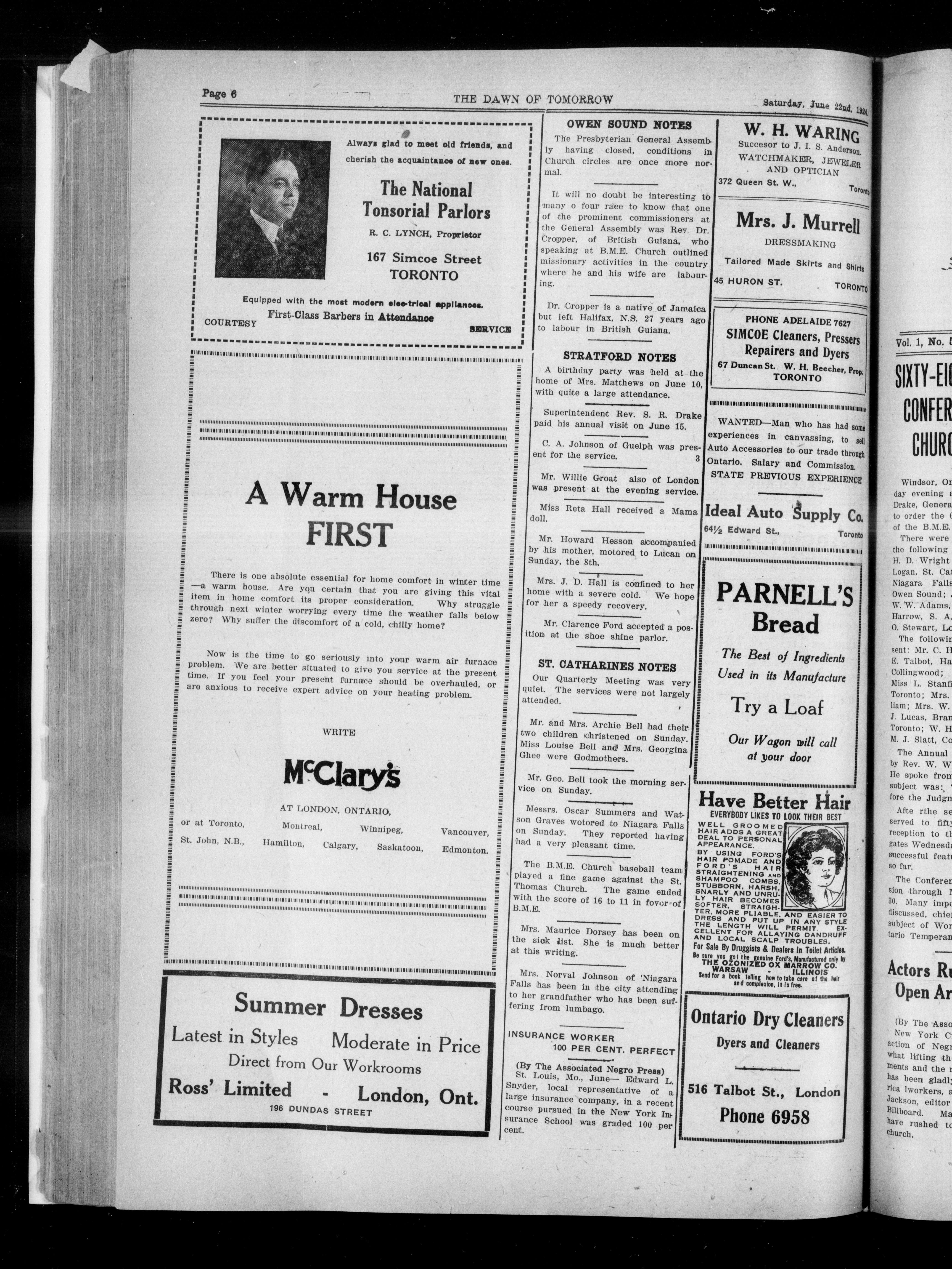 - The Dawn of tomorrow : Vol. I, No. 49 (June 22, 1924)