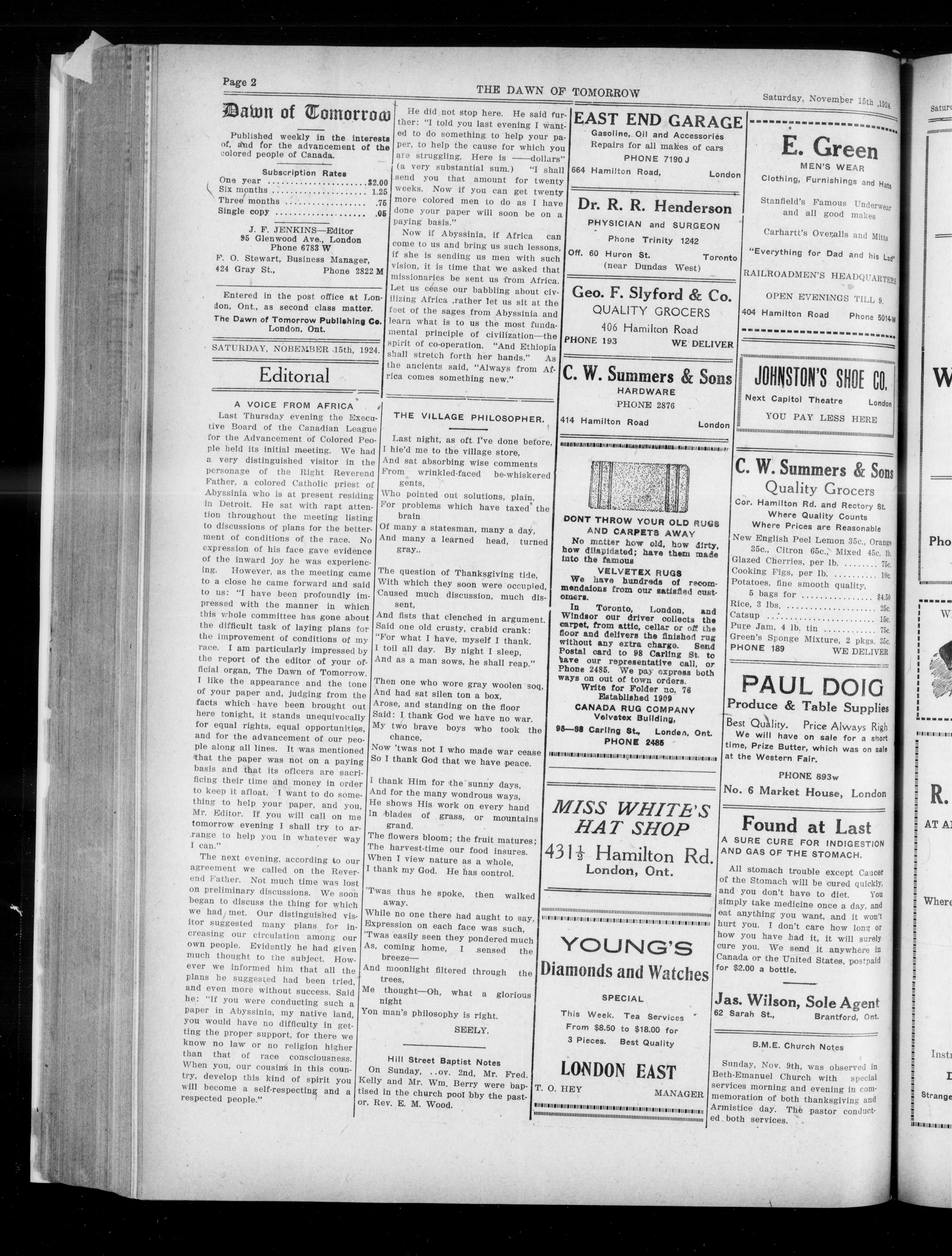 - The Dawn of tomorrow : Vol. II, No. 18 (November 15, 1924)