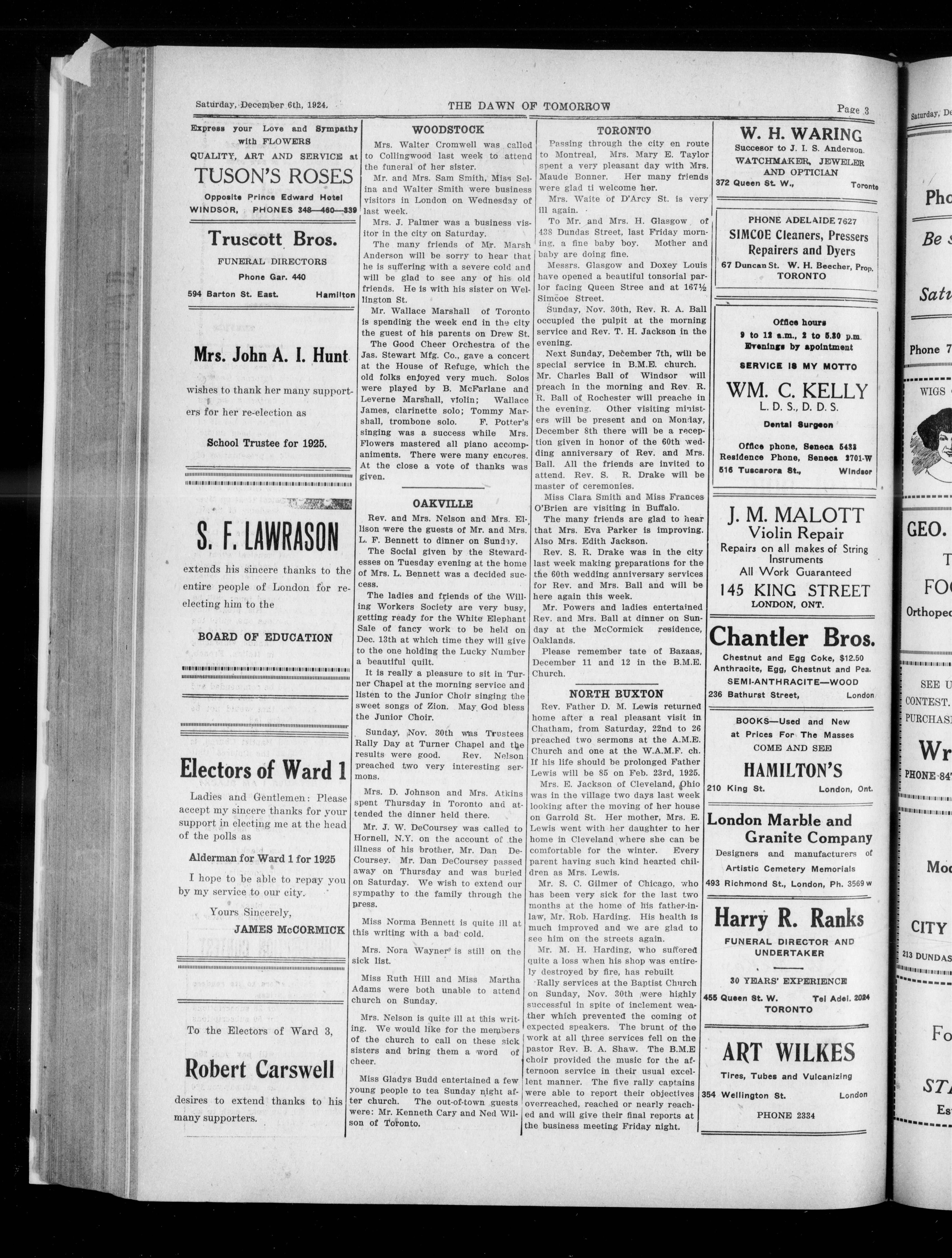 London, Ontario: The Dawn of Tomorrow Publishing Co., [1924]; 6 images avec recherche en texte intégral