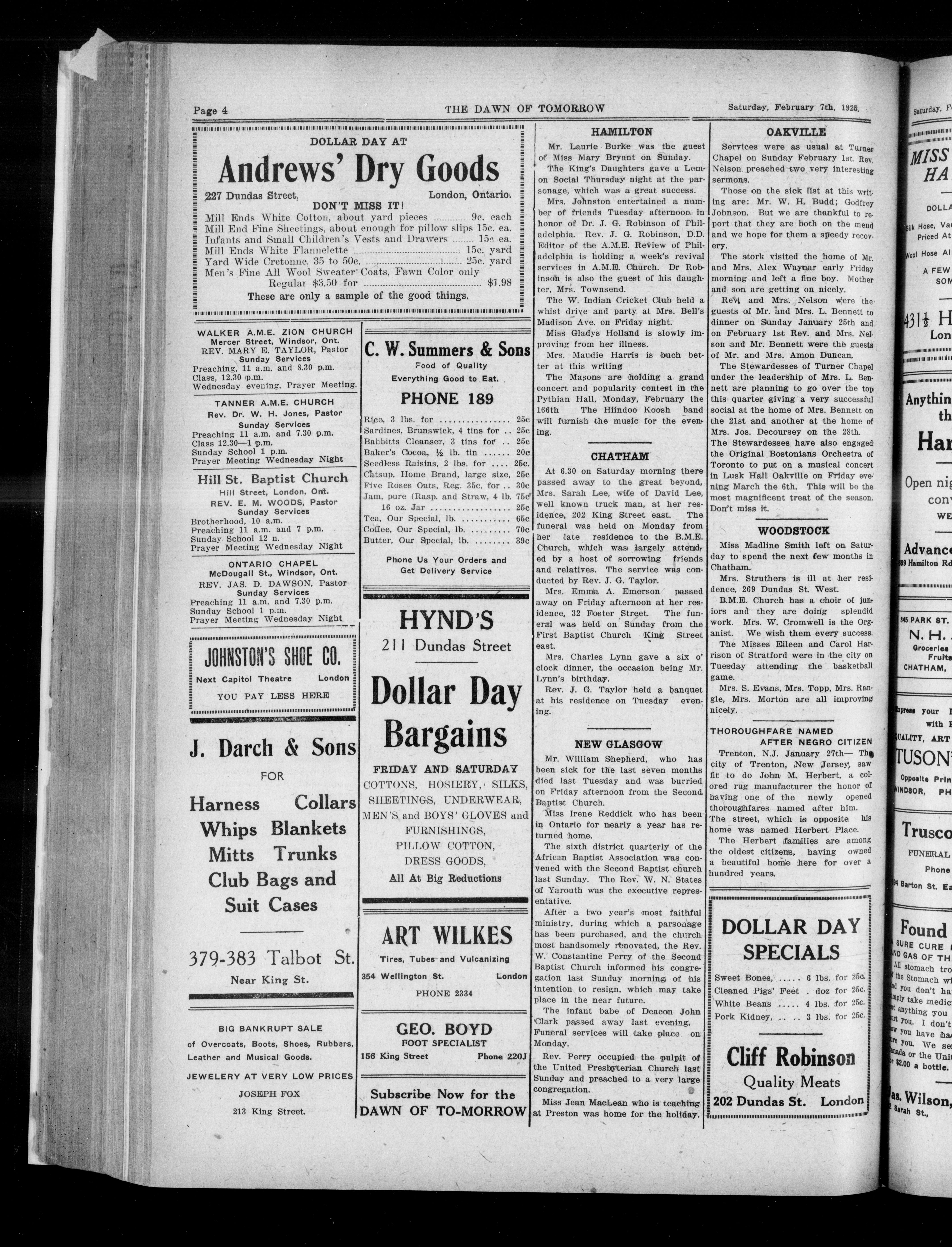 - The Dawn of tomorrow : Vol. II, No. 28 (February 7, 1925)