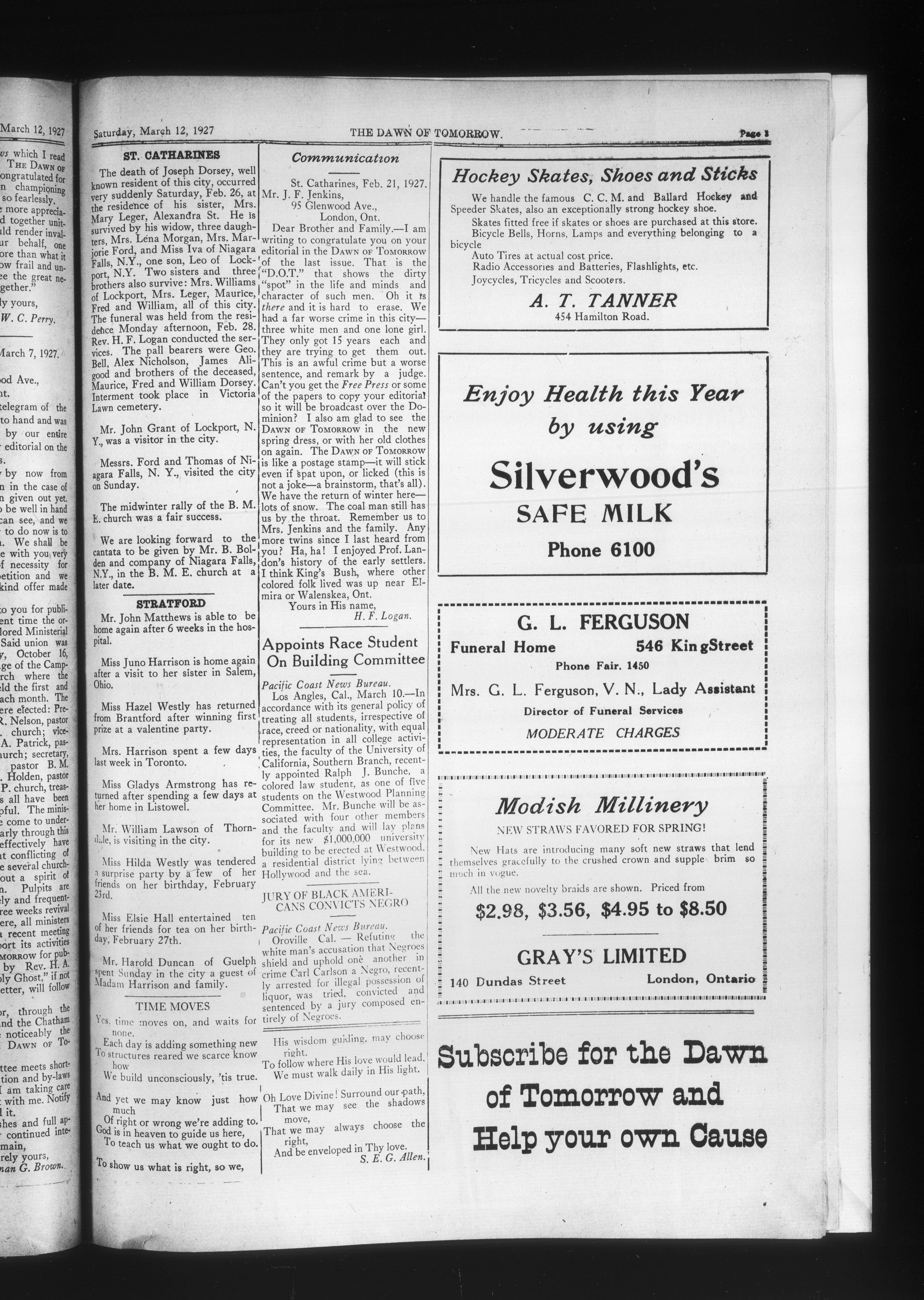 The Dawn of tomorrow : Vol. III, No. 52 (March 12, 1927)