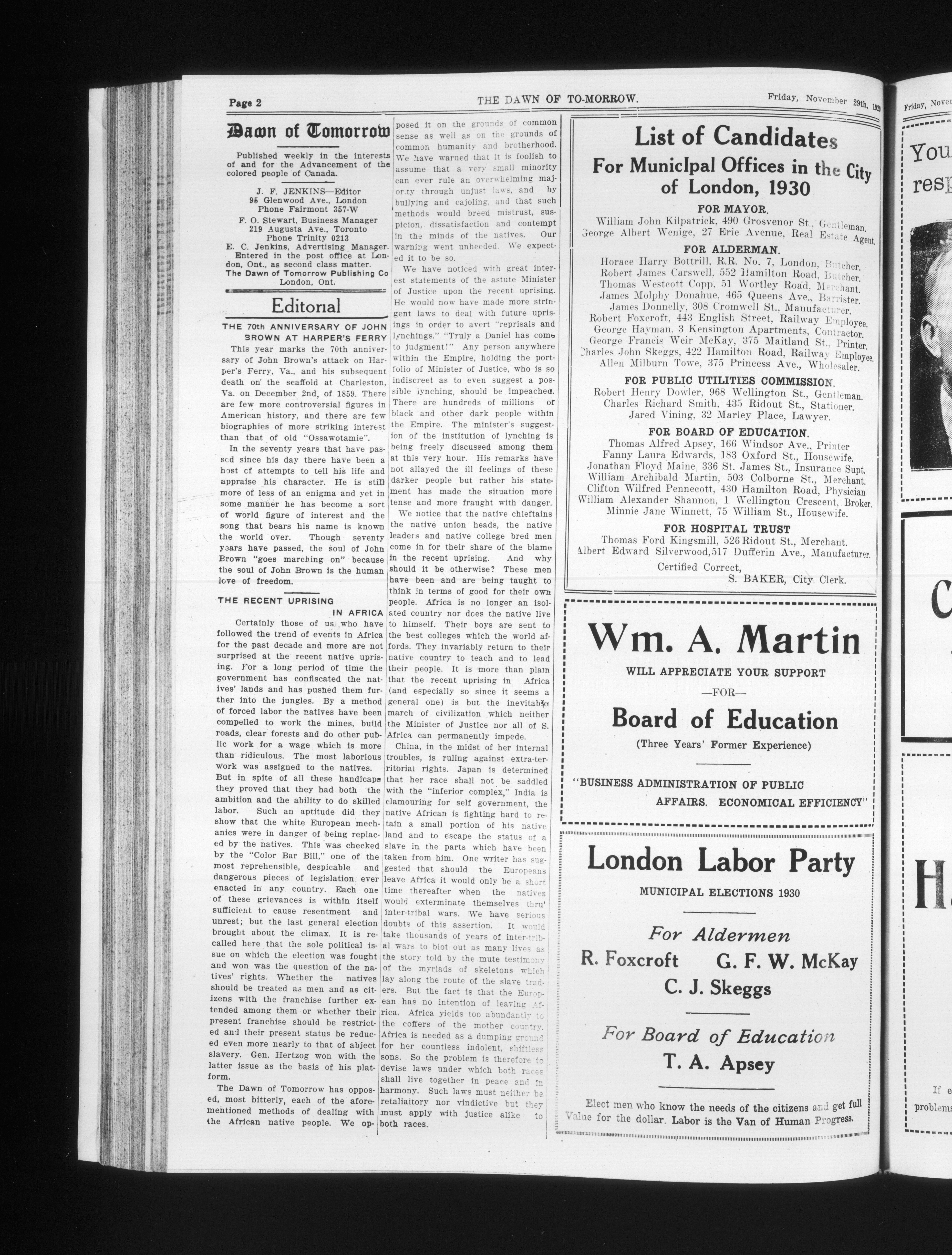 London, Canada: The Dawn of Tomorrow Publishing Co., [1929]