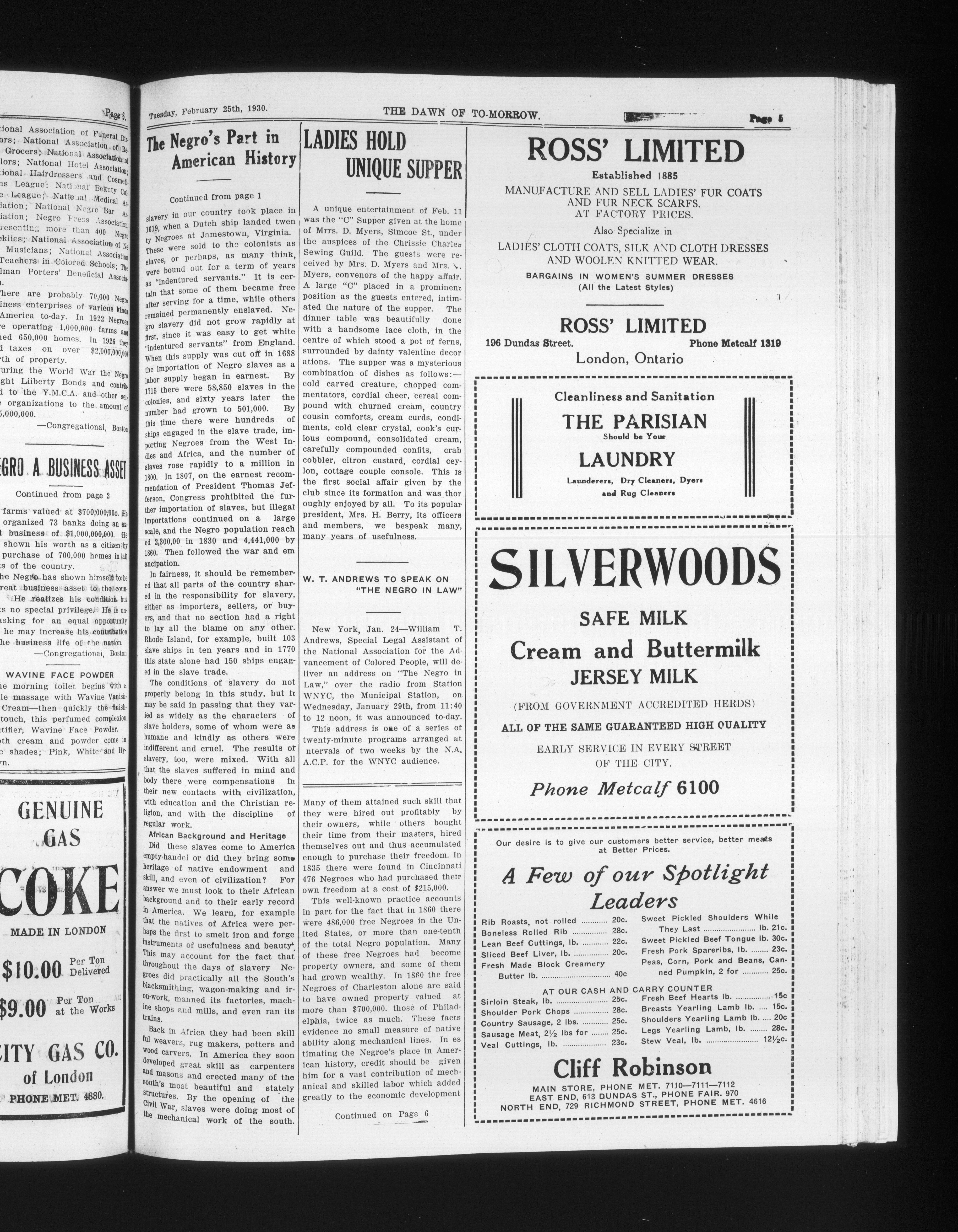 - The Dawn of tomorrow : Vol. V, No. 8 (February 25, 1930)