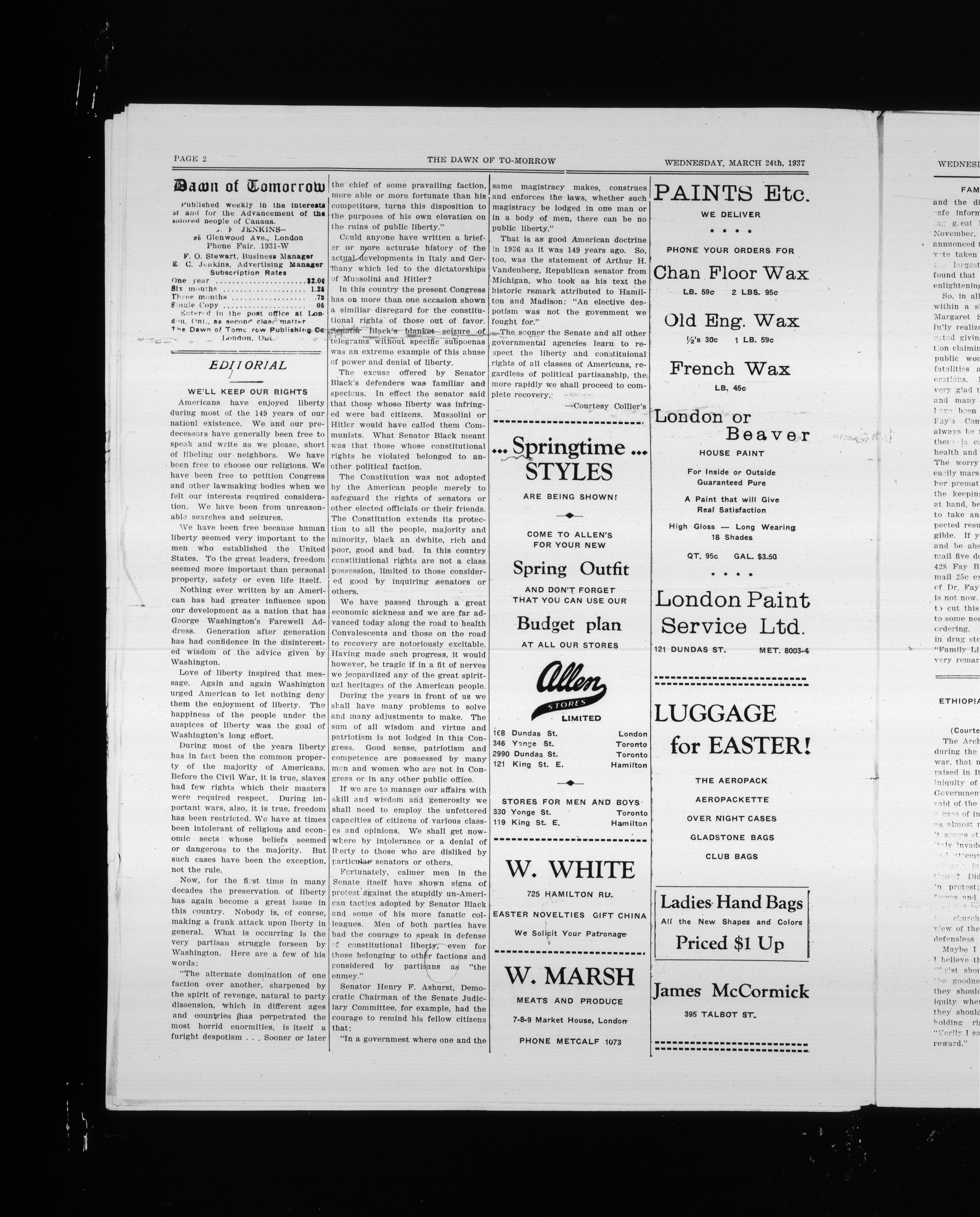 The Dawn of tomorrow : Vol. VII, No. 12 (March 24, 1937)