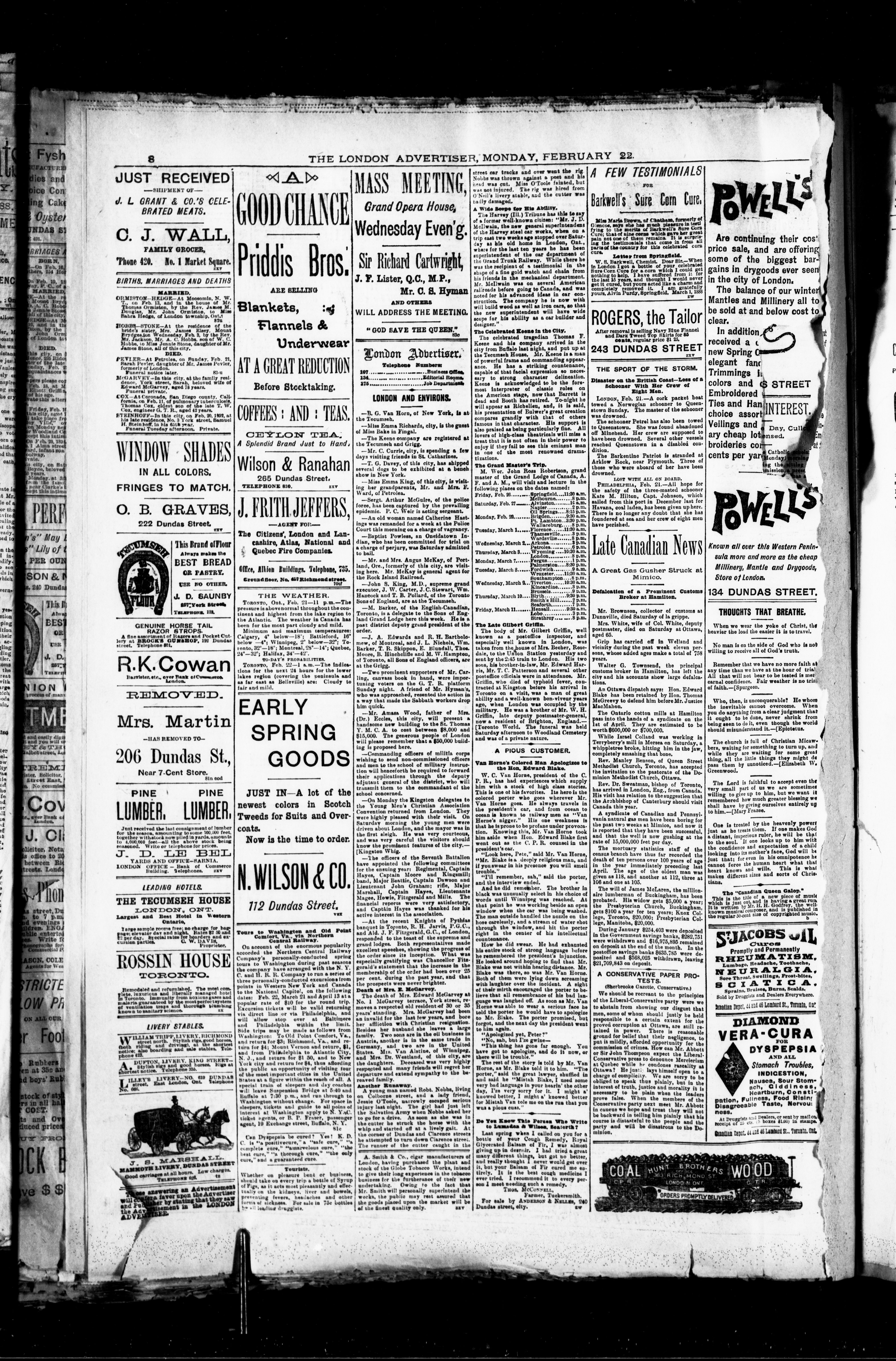 London advertiser. : London Advertiser : Vol. XXIX, No. 104 (February 22, 1892)