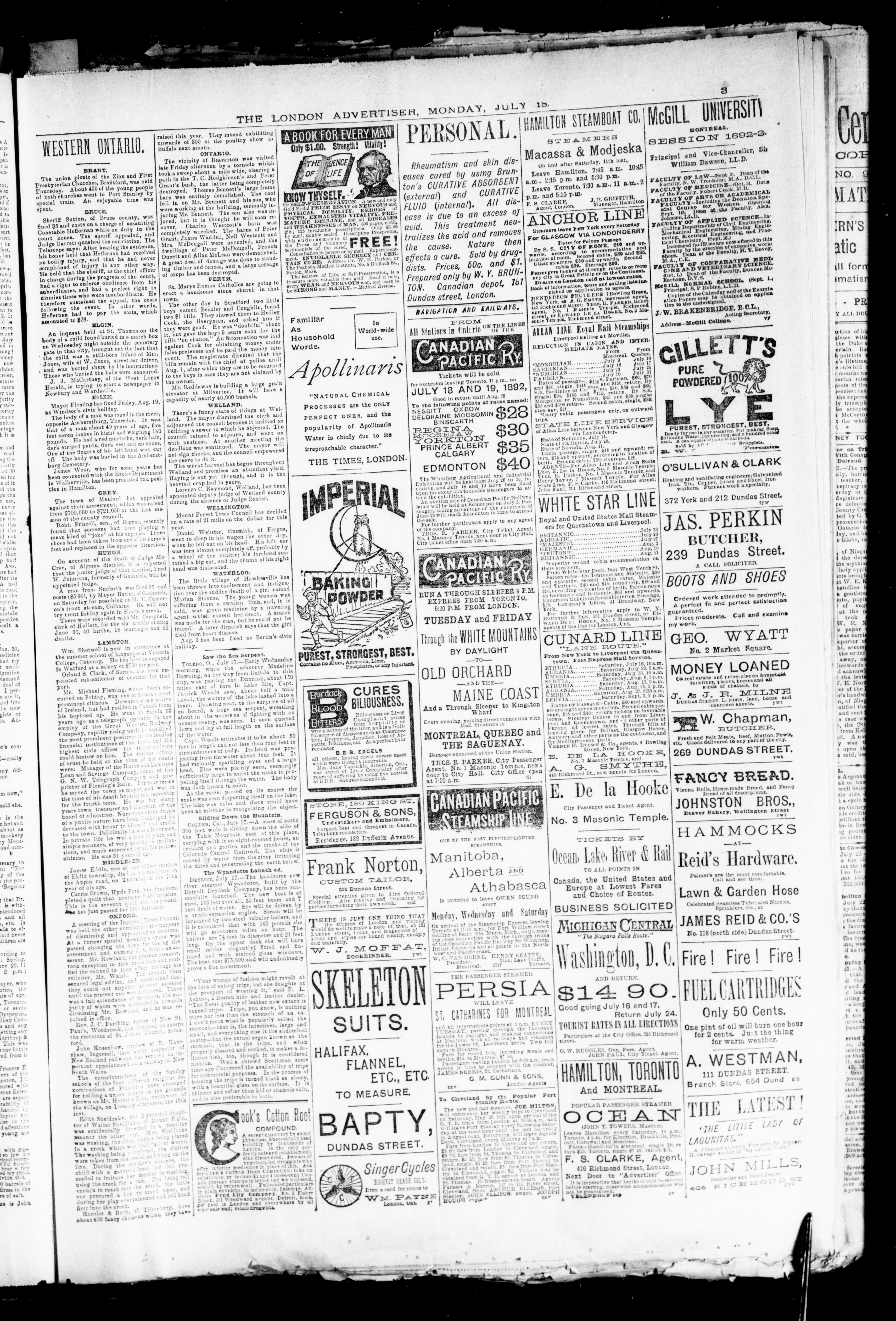 London advertiser. : London Advertiser : Vol. XXIX, No. 230 (July 18, 1892)