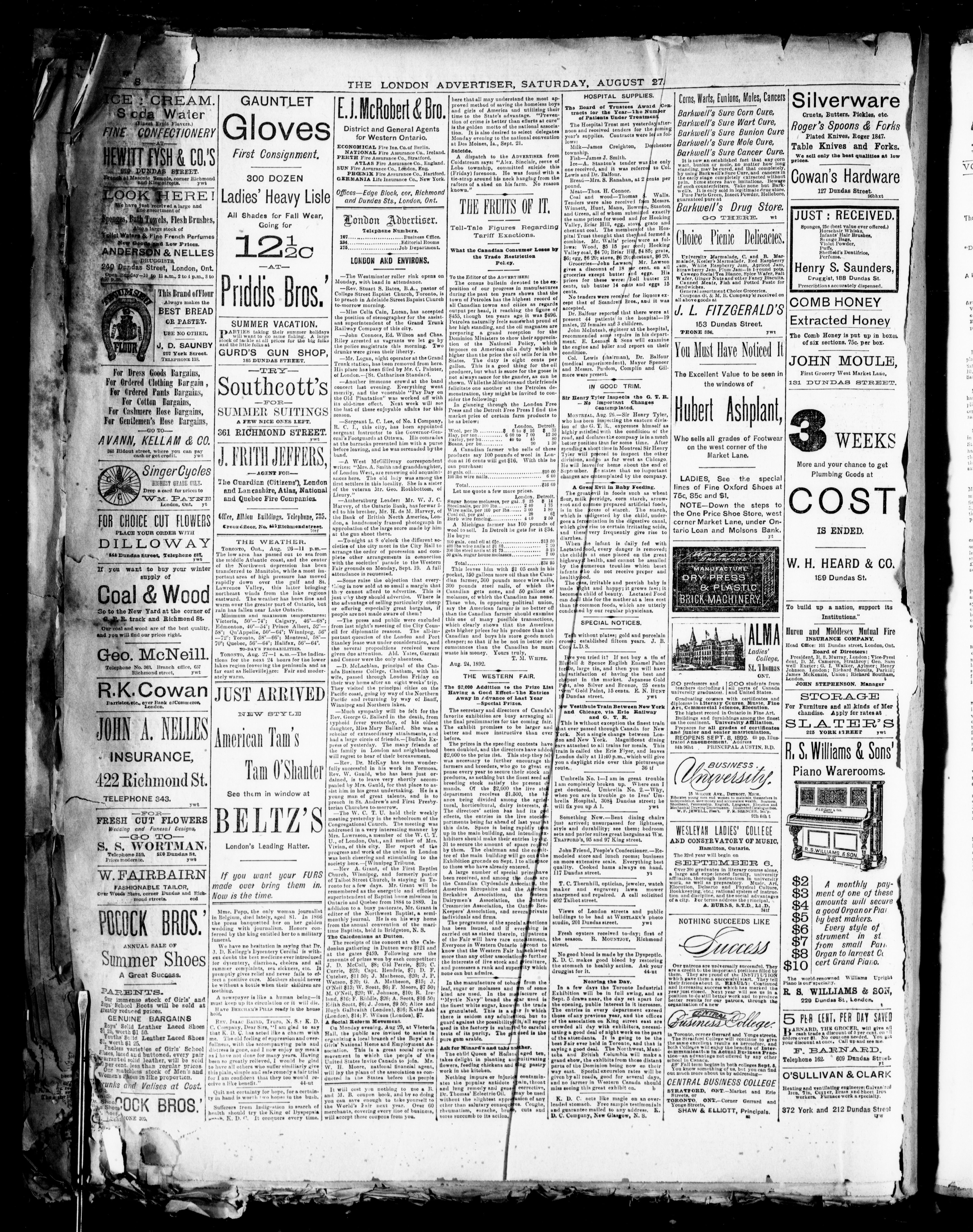 - London Advertiser : Vol. XXIX, No. 265 (August 27, 1892)