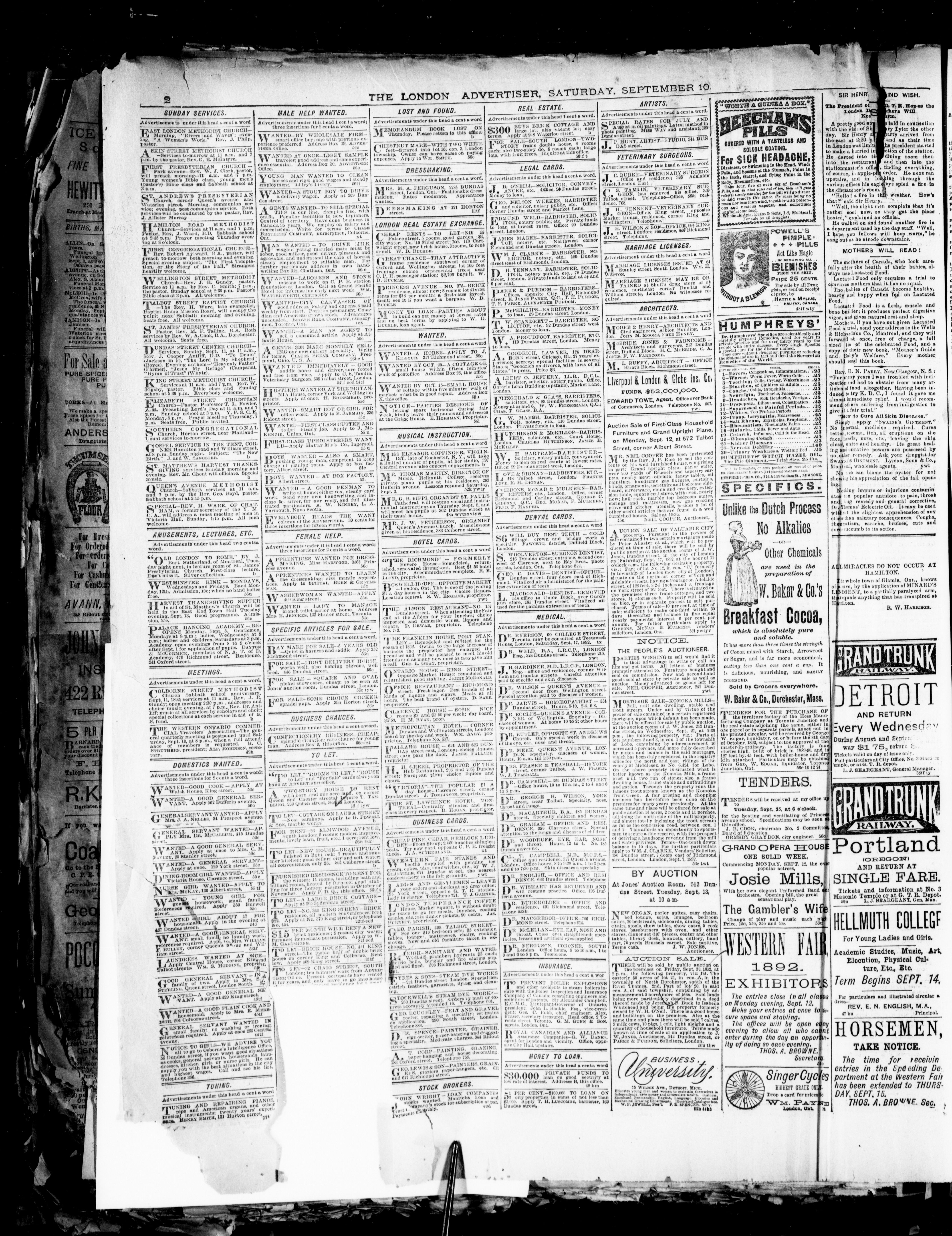 London Advertiser : Vol. XXIX, No. 277 (September 10, 1892)