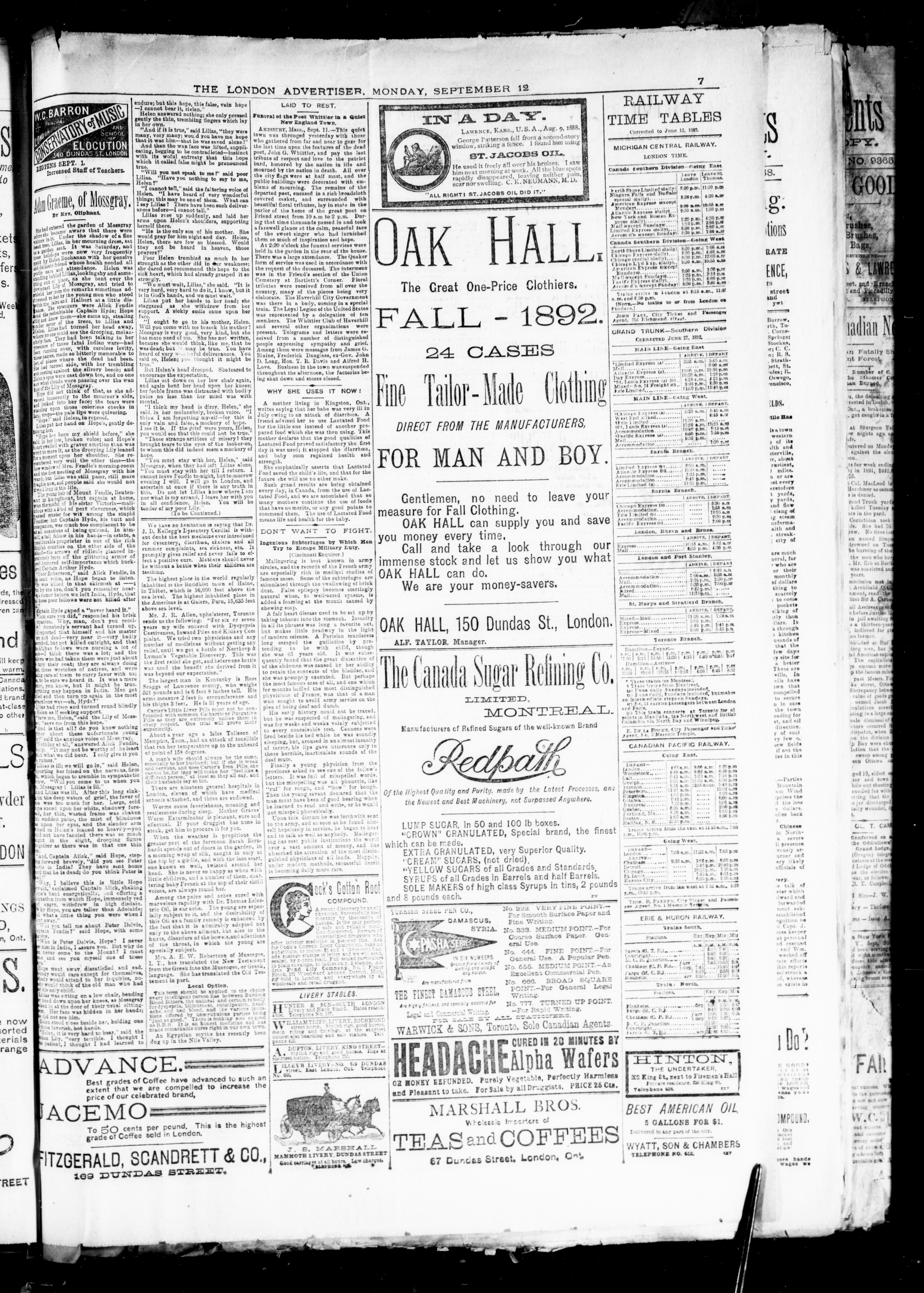 - London Advertiser : Vol. XXIX, No. 278 (September 12, 1892)