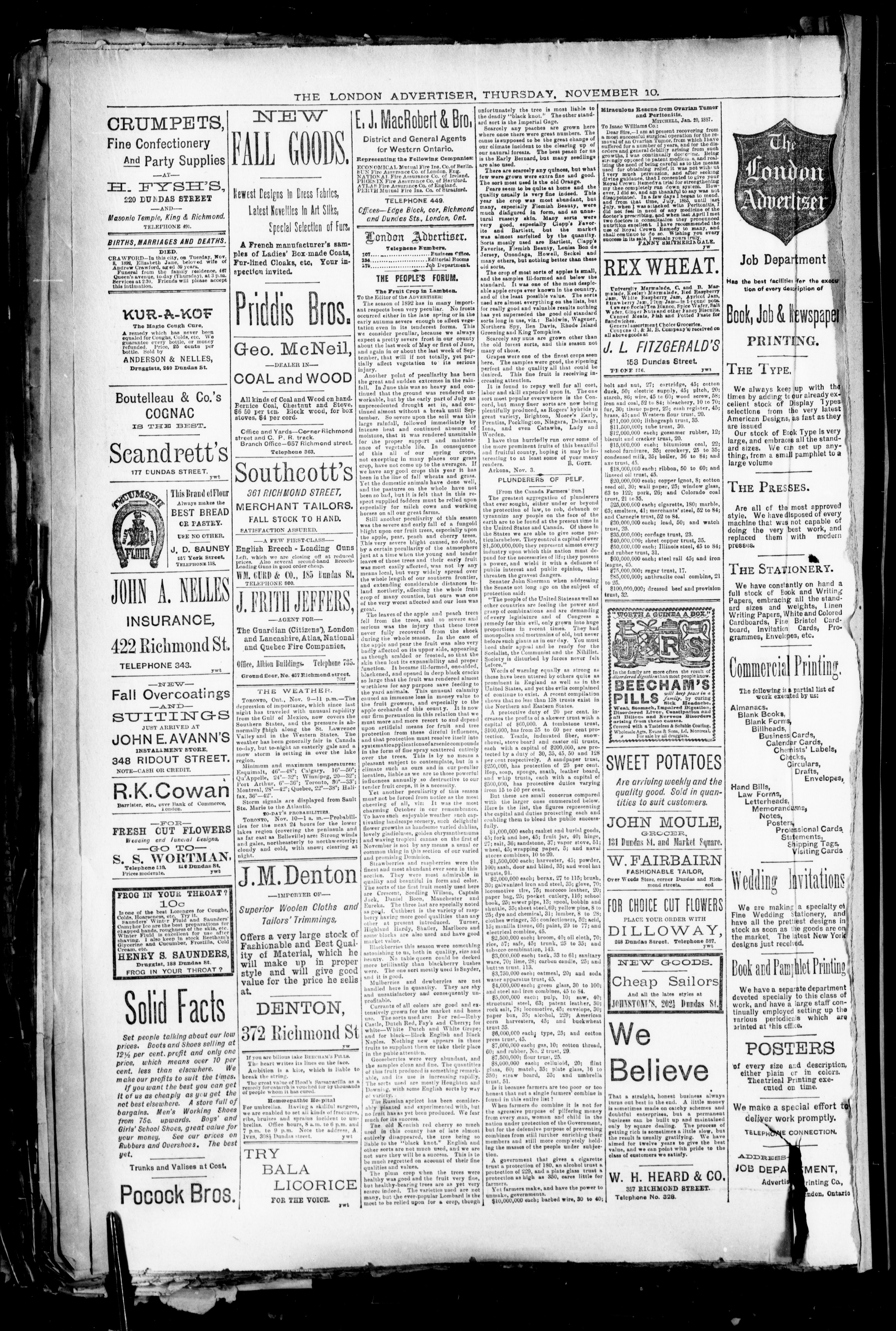 - London Advertiser : Vol. XXX, No. 315 (November 10, 1892)