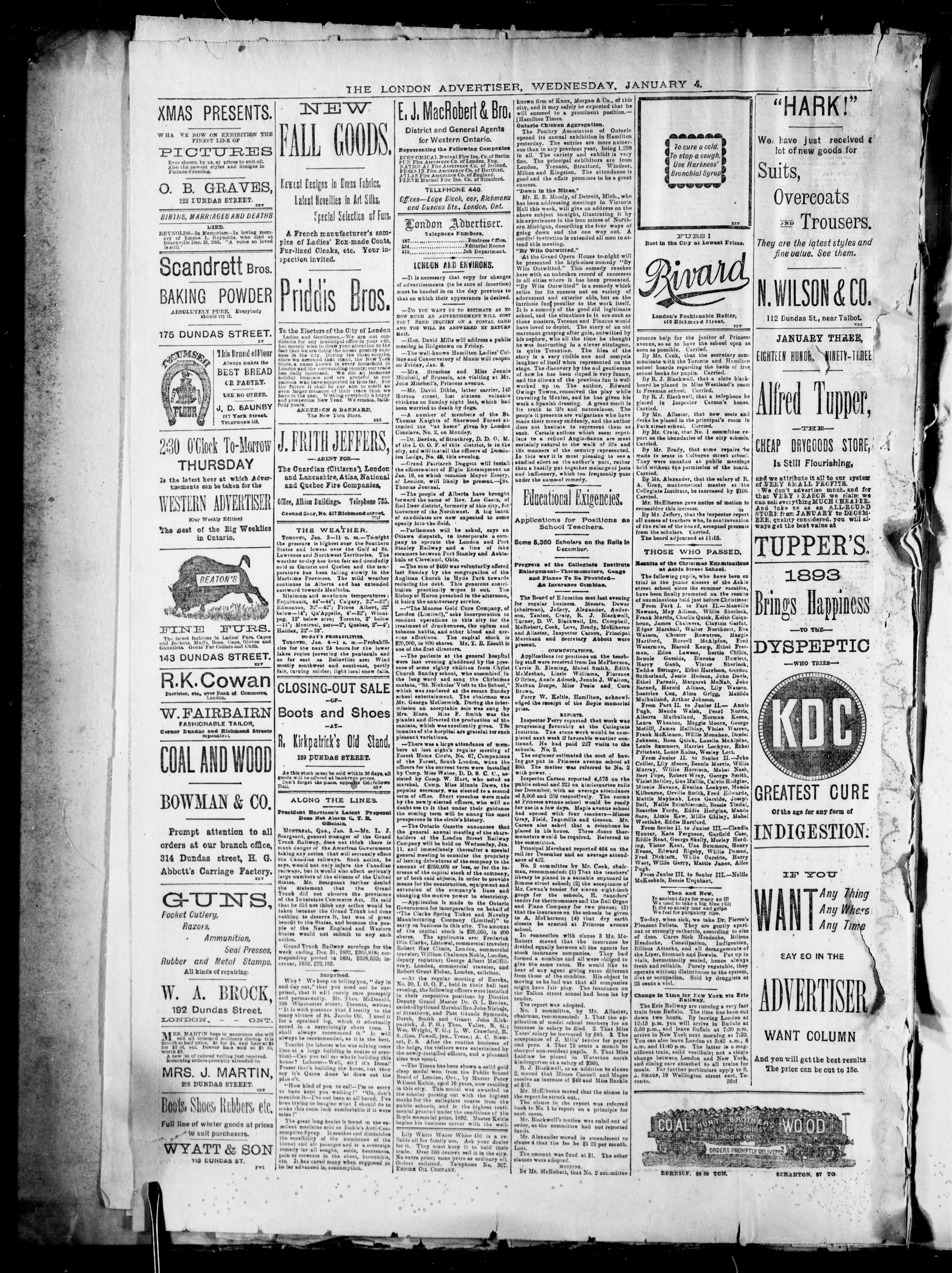 London advertiser. : London Advertiser : Vol. XXX, No. 62 (January 4, 1893)