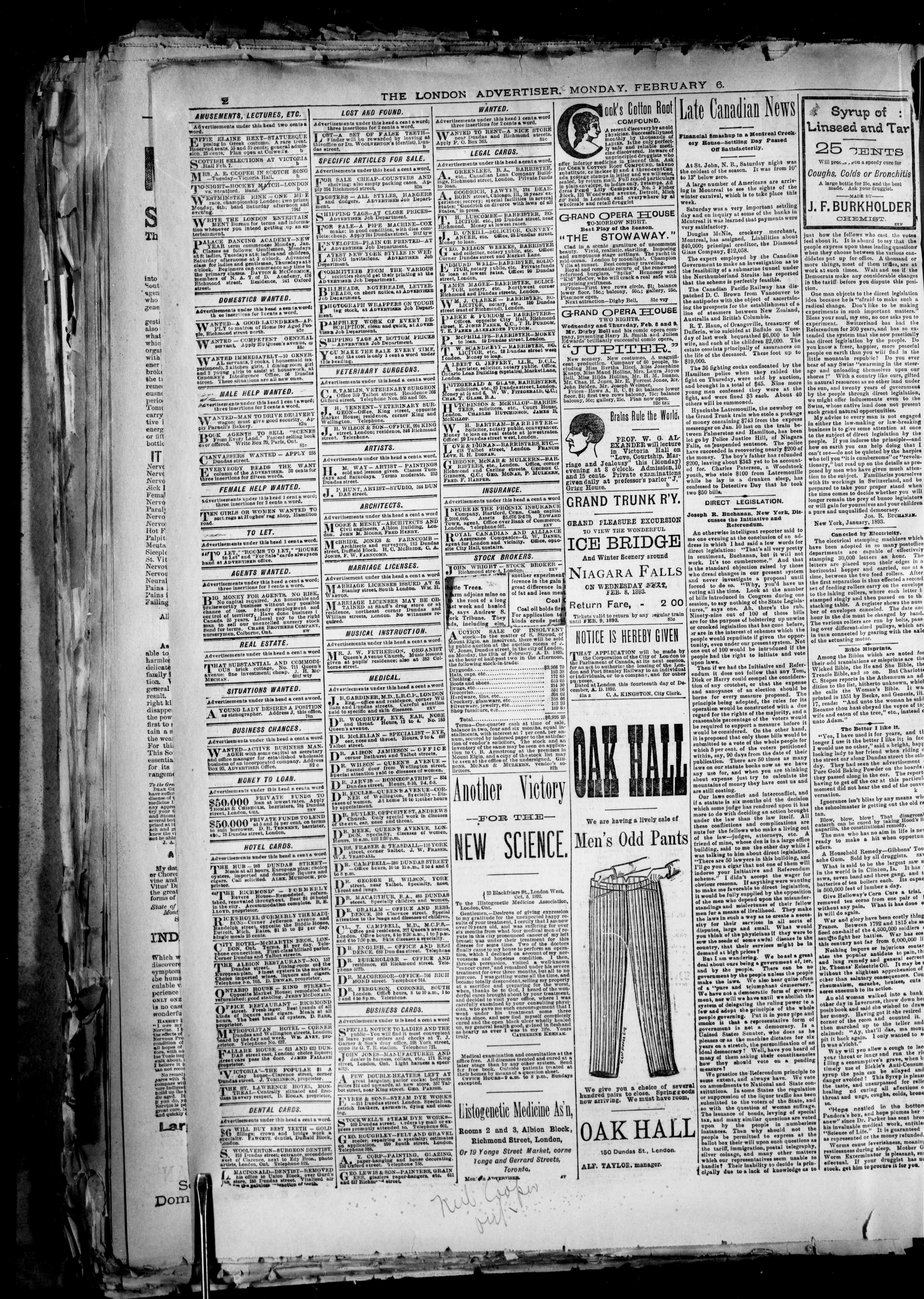 London advertiser. : London Advertiser : Vol. XXX, No. 90 (February 6, 1893)