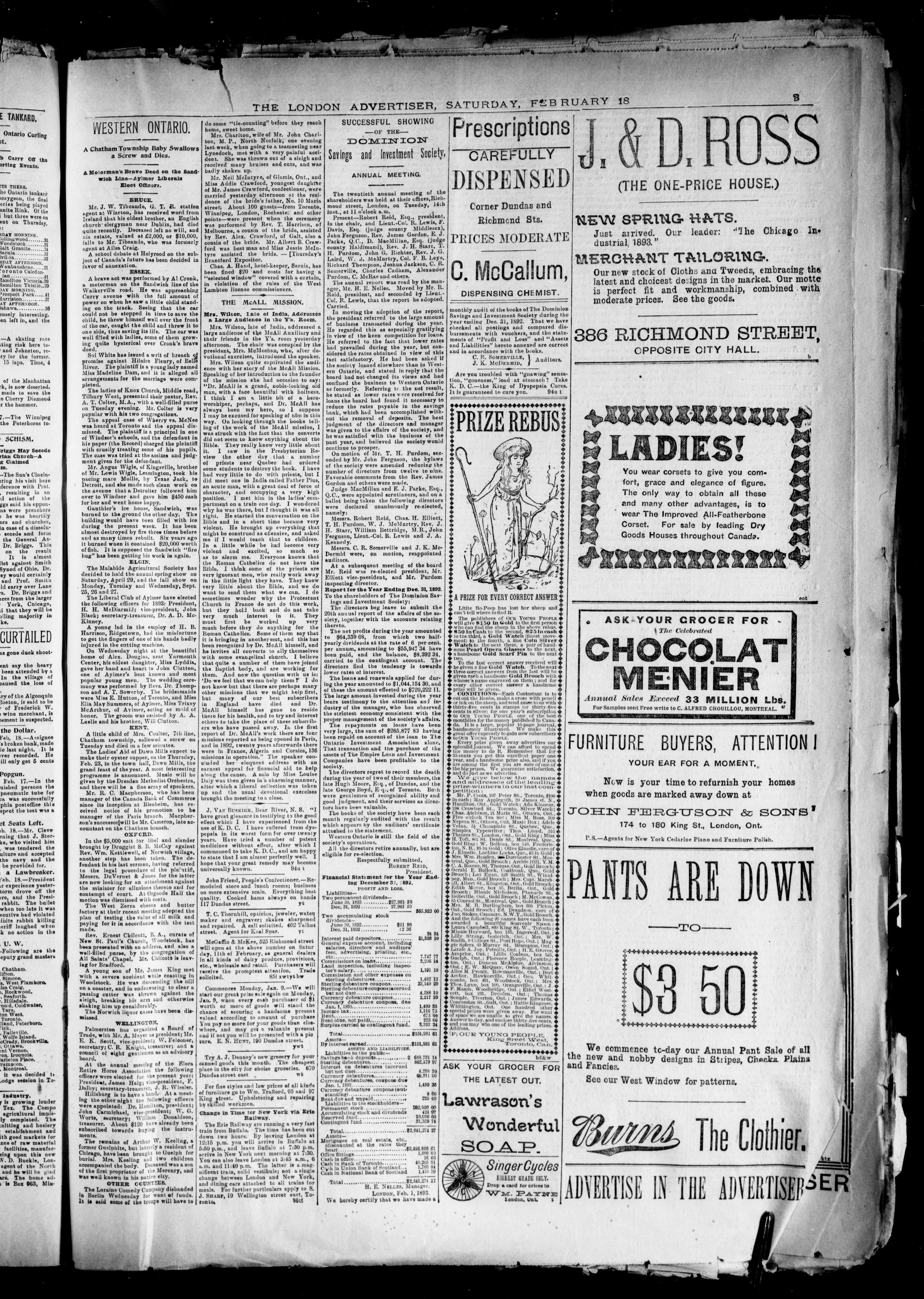 London advertiser. : London Advertiser : Vol. XXX, No. 101 (February 18, 1893)