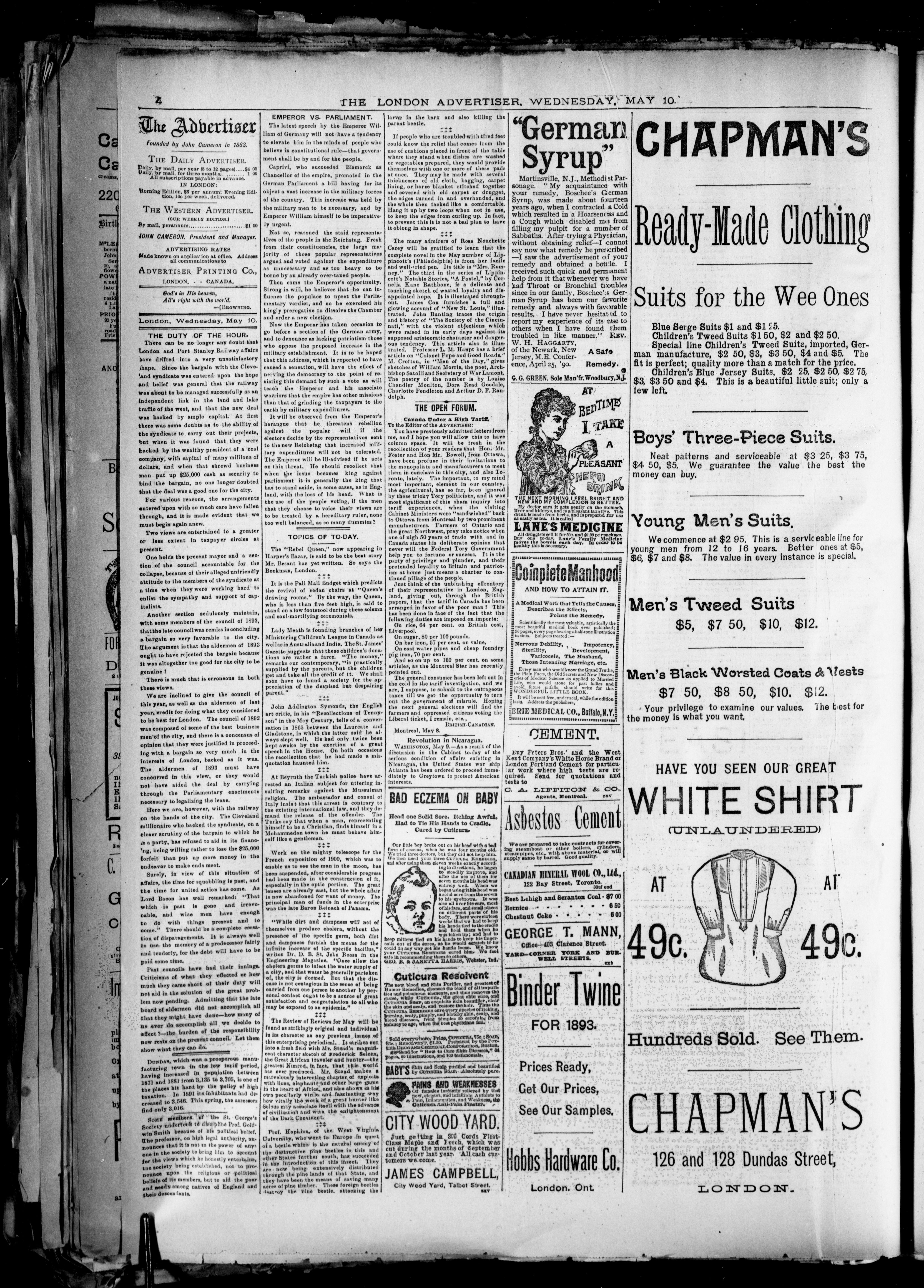 London advertiser. : London Advertiser : Vol. XXX, No. 170 (May 10, 1893)