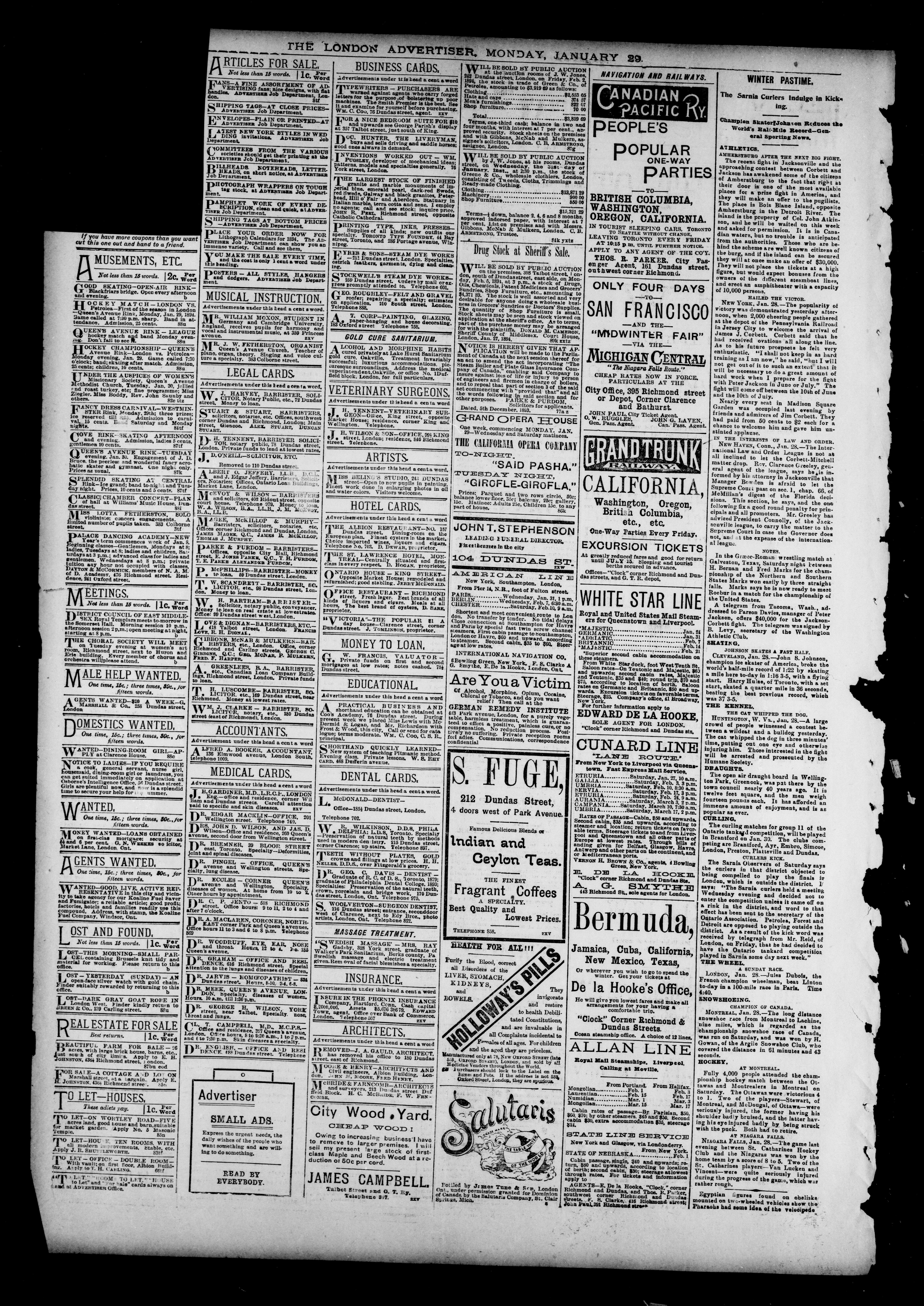 London advertiser. : London Advertiser : Vol. XXXI, No. 82 (January 29, 1894)