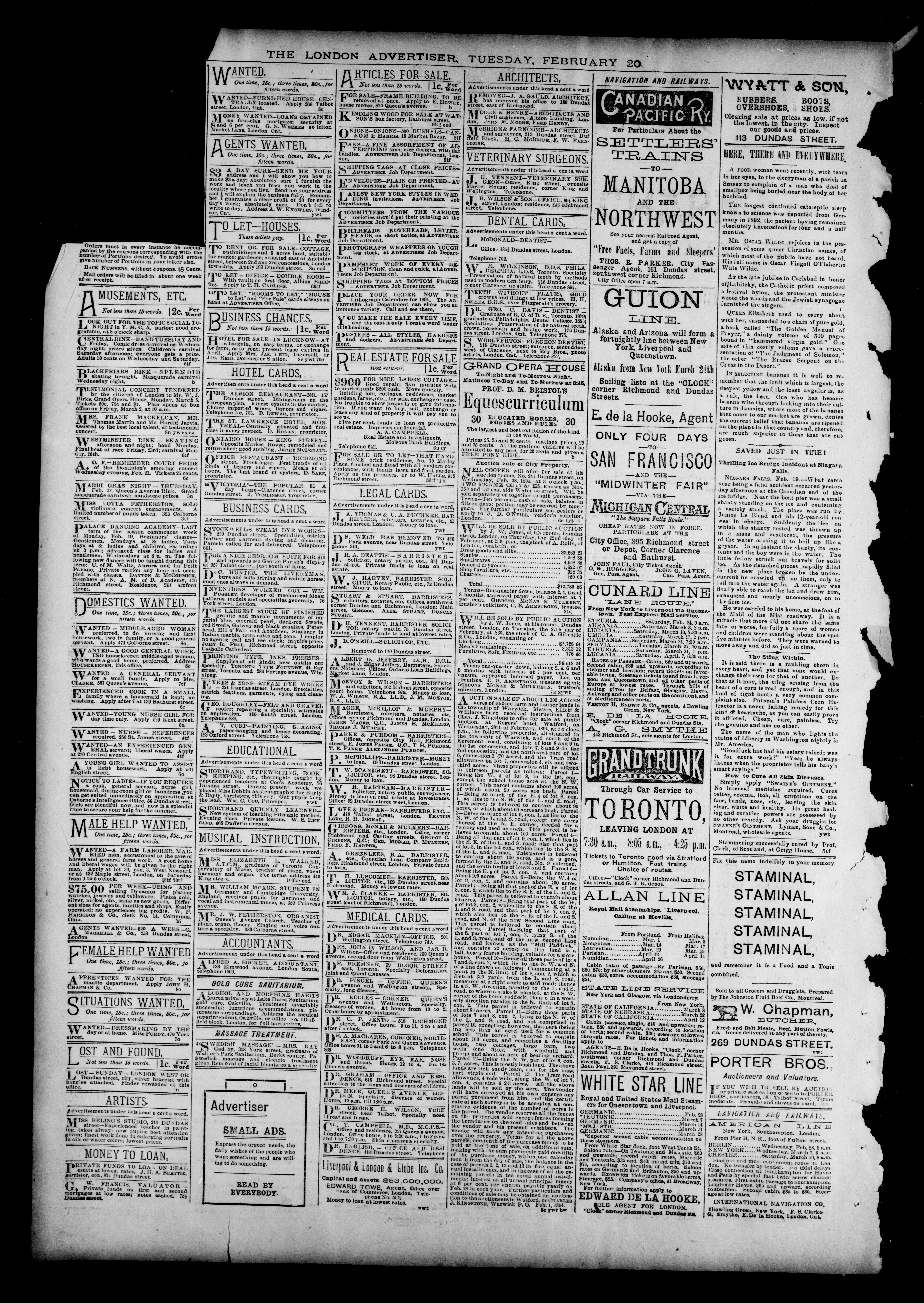 London advertiser. : London Advertiser : Vol. XXXI, No. 101 (February 20, 1894)