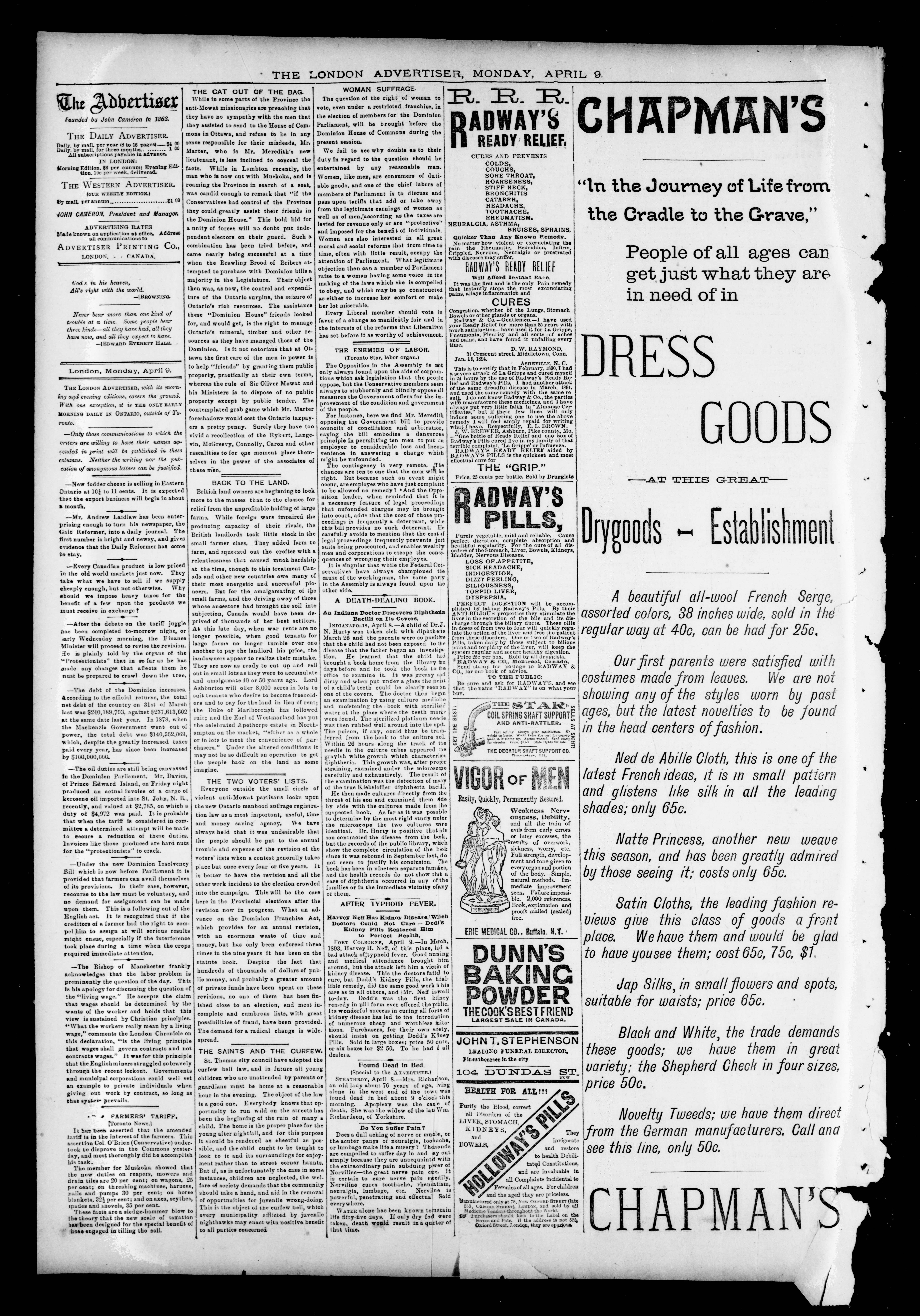 London advertiser. : London Advertiser : Vol. XXXI, No. 142 (April 9, 1894)