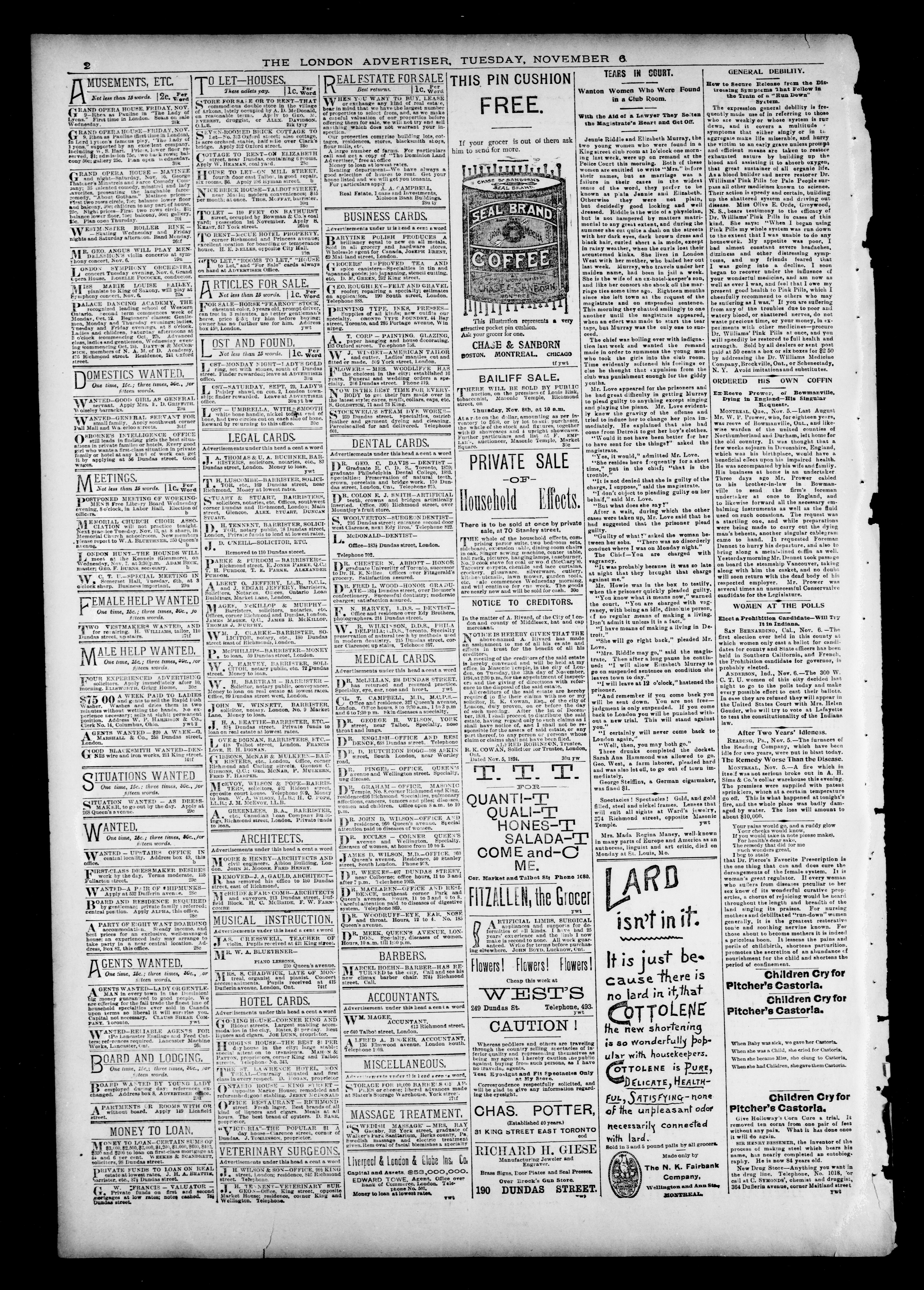 London advertiser. : London Advertiser : Vol. XXXII, No. 10 (November 6, 1894)