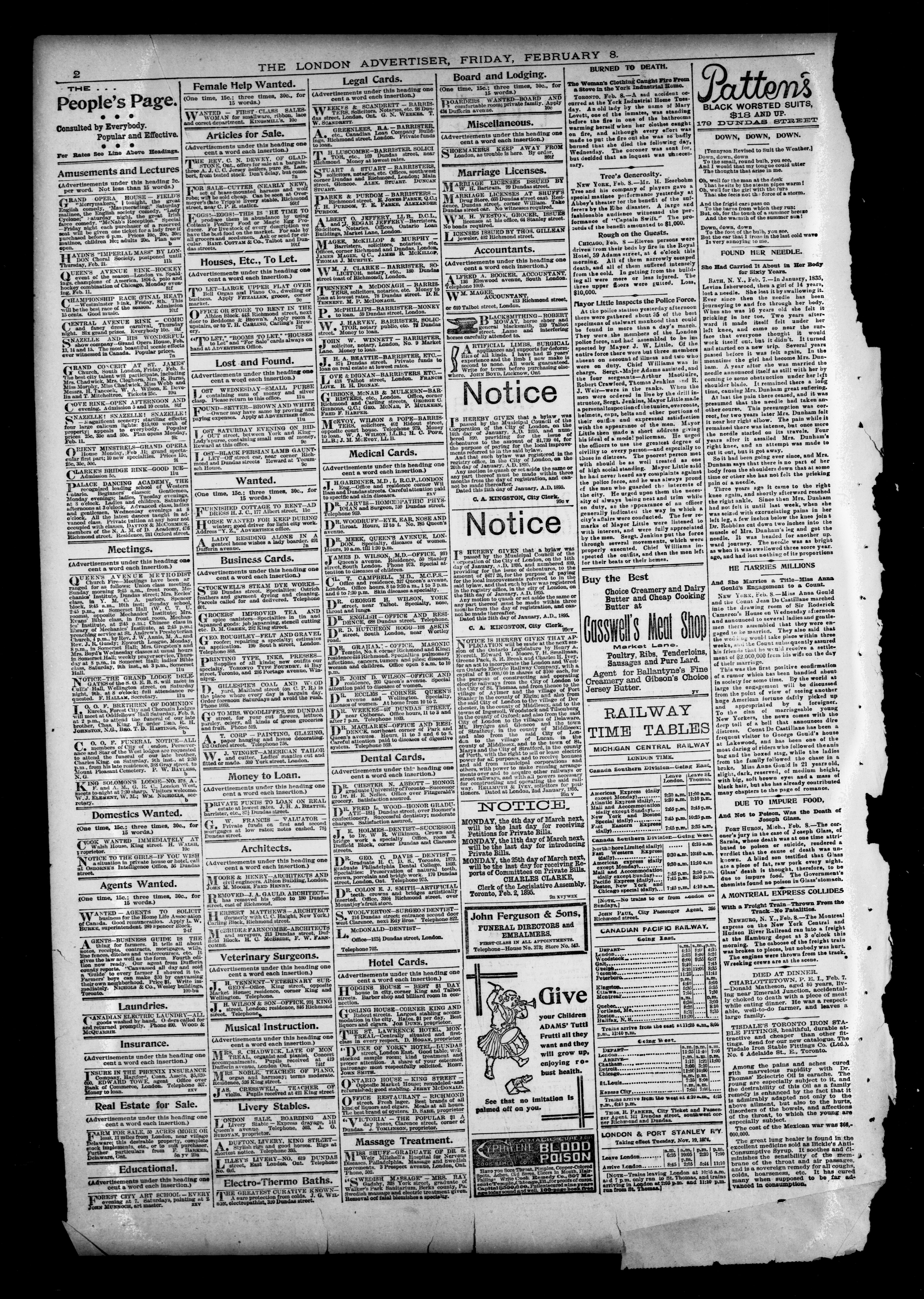 London advertiser. : London Advertiser : Vol. XXXII, No. 91 (February 8, 1895)