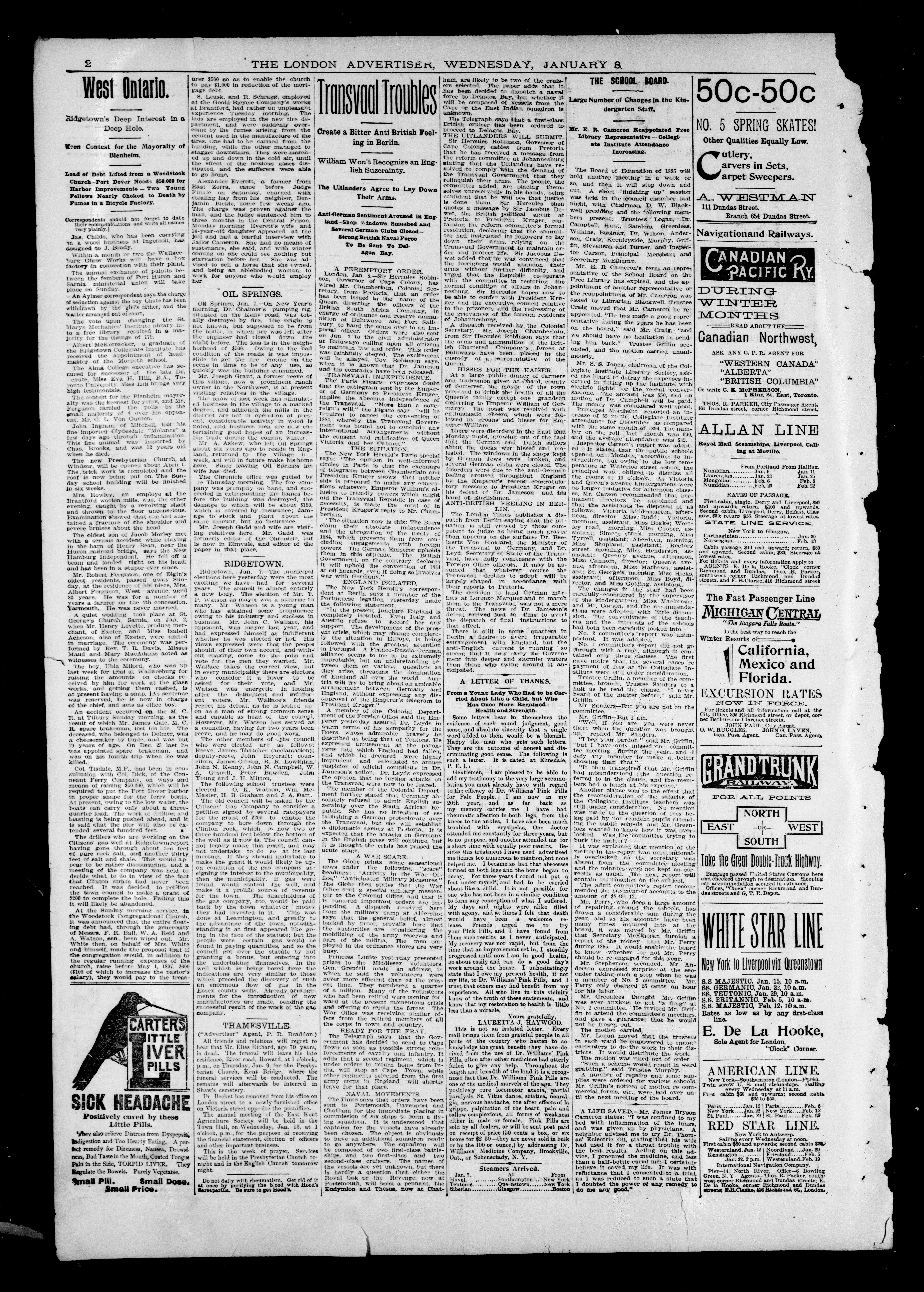 - London Advertiser : Vol. XXXIII, No. 65 (January 8, 1896)