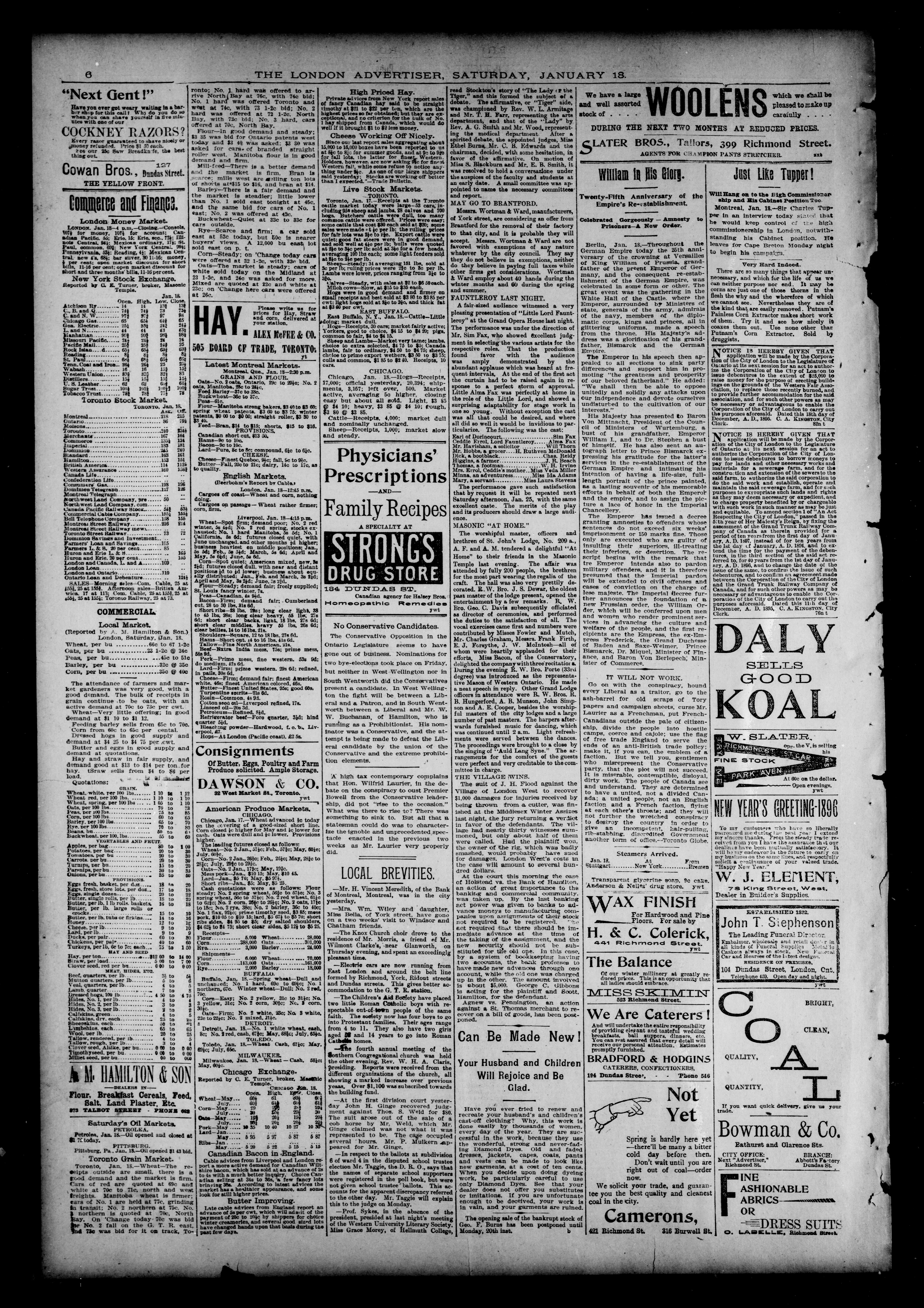 - London Advertiser : Vol. XXXIII, No. 74 (January 18, 1896)