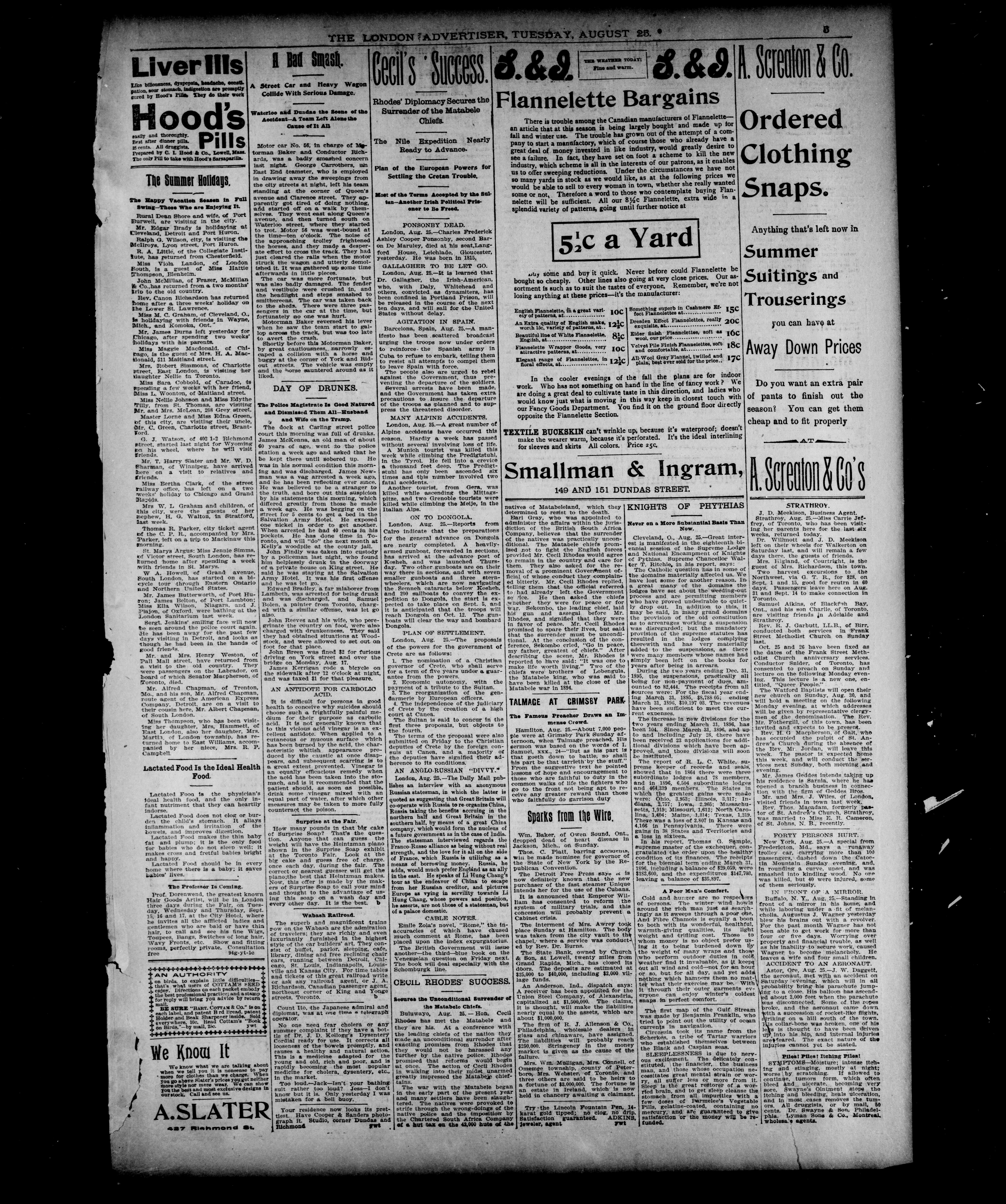 London advertiser. : London Advertiser : Vol. XXXIII, No. 263 (August 25, 1896)