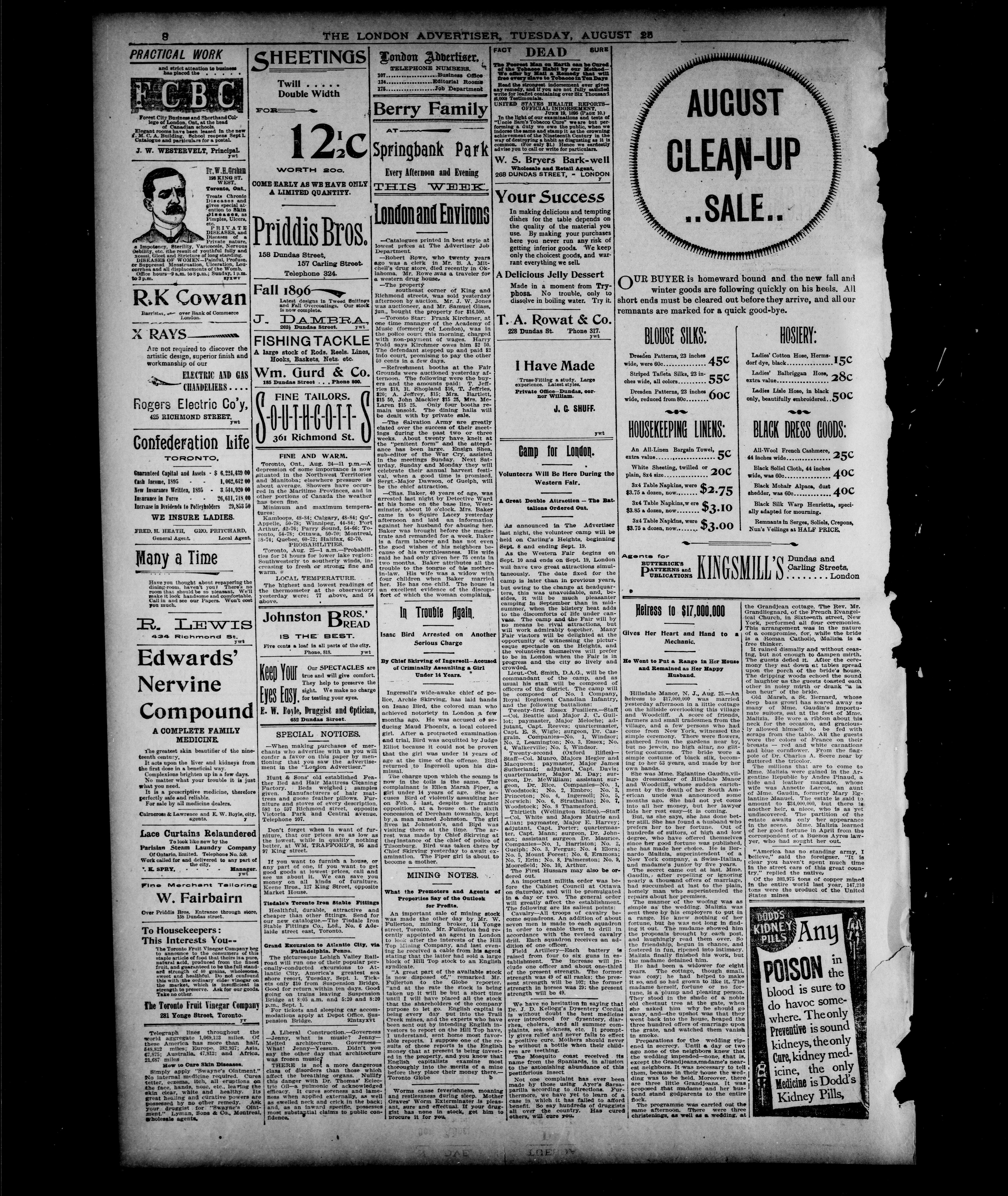 - London Advertiser : Vol. XXXIII, No. 263 (August 25, 1896)